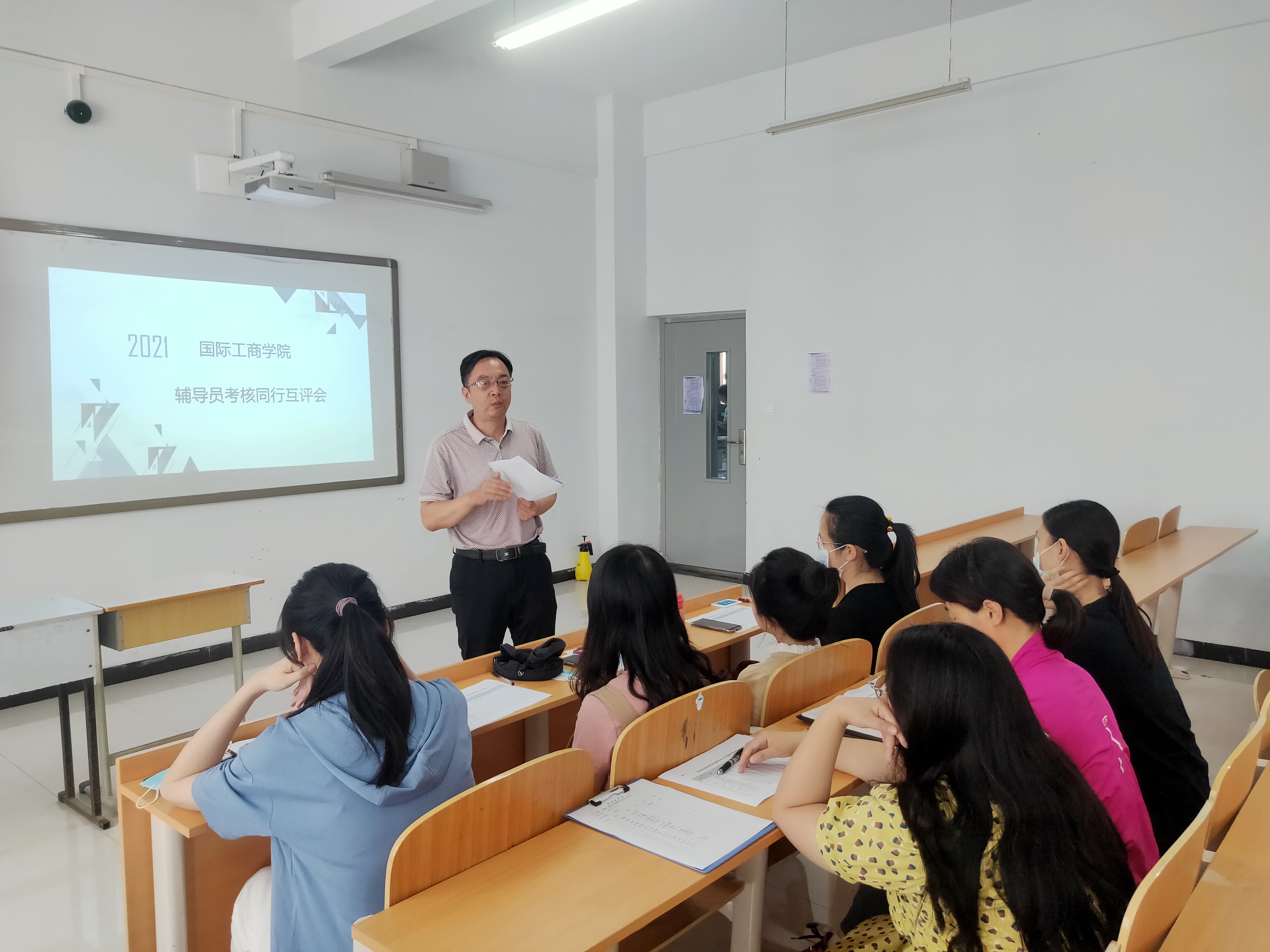 切实提高学院辅导员政治素质和业务素质,激励辅导员认真履行岗位职责,充分调动工作的积极性,客观、公正地评价辅导员工作实绩,6月18日,国际工商学院在1B教学楼203教室召开辅导员考核同行互评会,会议由国际工商学院党总支书记张鹏主持,团总支谢锡莹、全体专兼职辅导员参加。