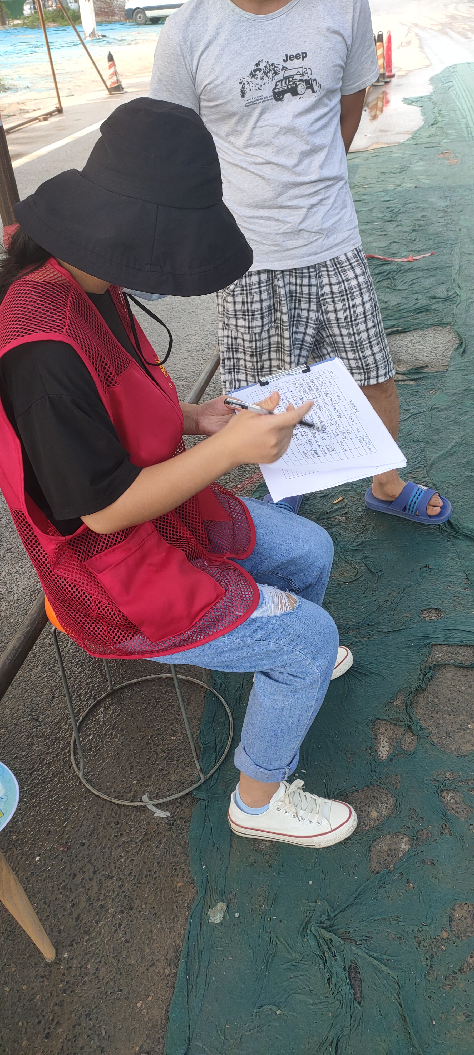 8月4日起,村委开始了疫情防控志愿者值班。每天下午13:00正值烈日高照之时,尹紫露的身影便出现在四环路口。她戴着一次性手套给来往行人和车辆驾驶员测体温、检查健康码、拿酒精喷洒消毒。每天值班到晚上19:00,6个小时的时间内,尹紫露为上百辆车辆、上千余人测过体温,查过健康码。