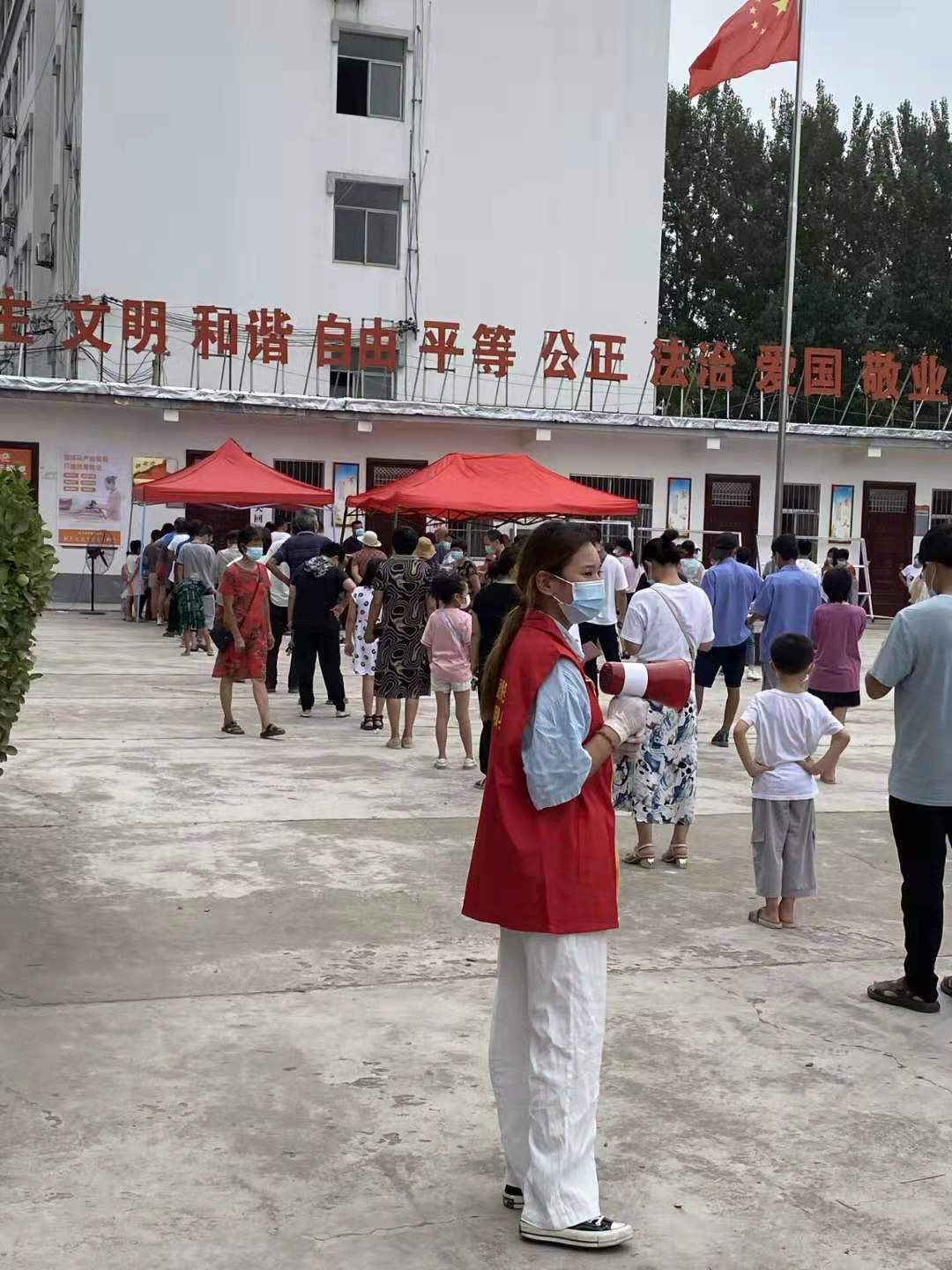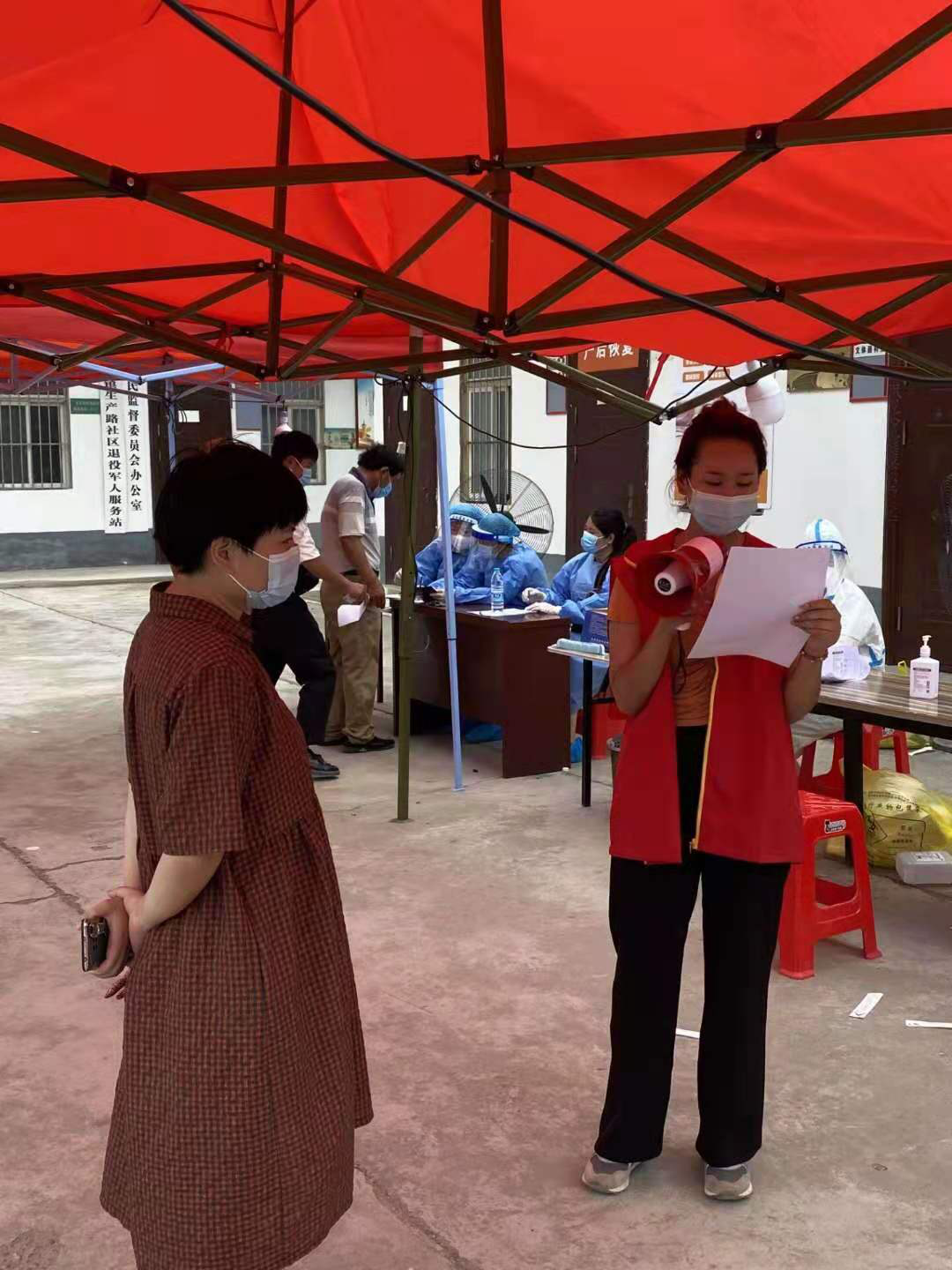 20级会计一班崔月月于8月10日-8月15日到河南省商丘市睢县城关回族镇东关南村村委会报道,参与疫情防控核酸检测工作。她主要负责维持现场秩序、登记核酸检测人员信息、帮助老人扫码、宣读核酸检测人员名单等工作。她说:疫情就是命令,防控就是责任。江山犹在,国泰民安。