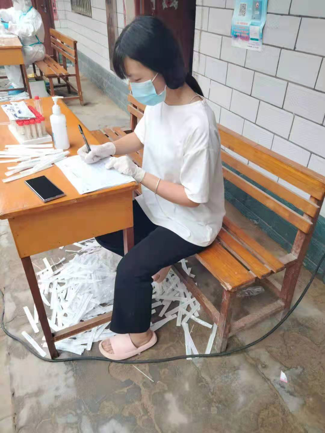 20级会计四班张潇雨,家住河南省开封市尉氏县门楼任乡花张村。8月14日,张潇雨同学积极响应战“疫”号召,成为家乡防疫的一名志愿者。她主要负责在核酸检测现场记录参与核酸检测人员的信息,并进行核对整理。