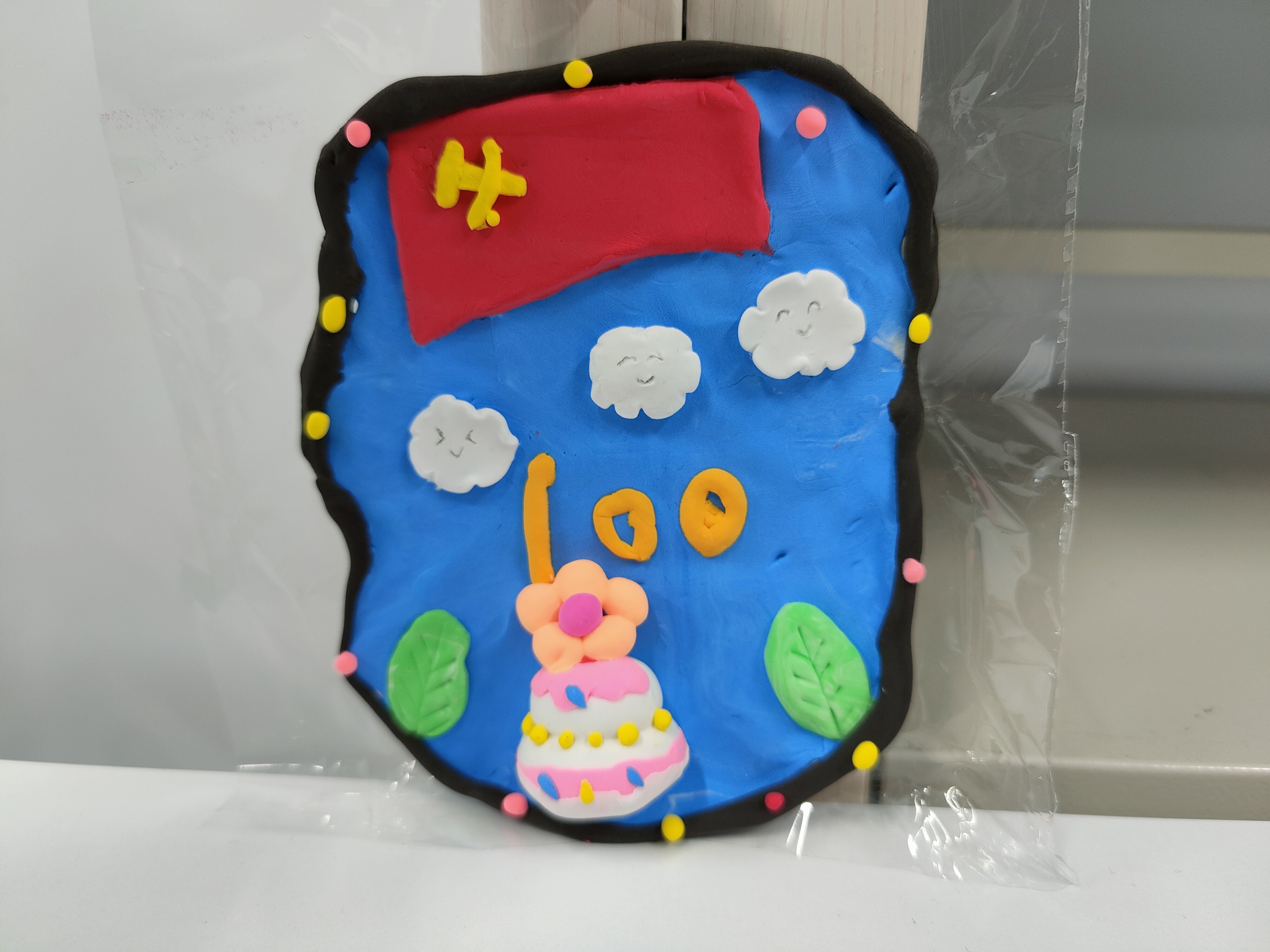 在活动现场,同学们六人一组,相互分工,密切配合,有人负责捏红军战士,有人负责捏向日葵的组件,有人负责做背景,红色的粘土做国旗,黄色粘土做大地,通过搓、团、捏、接、压等方式,一双双巧手将各种物件栩栩如生的展现出来,逐步完成党徽、国旗、白鸽、草地,每一个素材都饱含着大家对党的无限热爱。