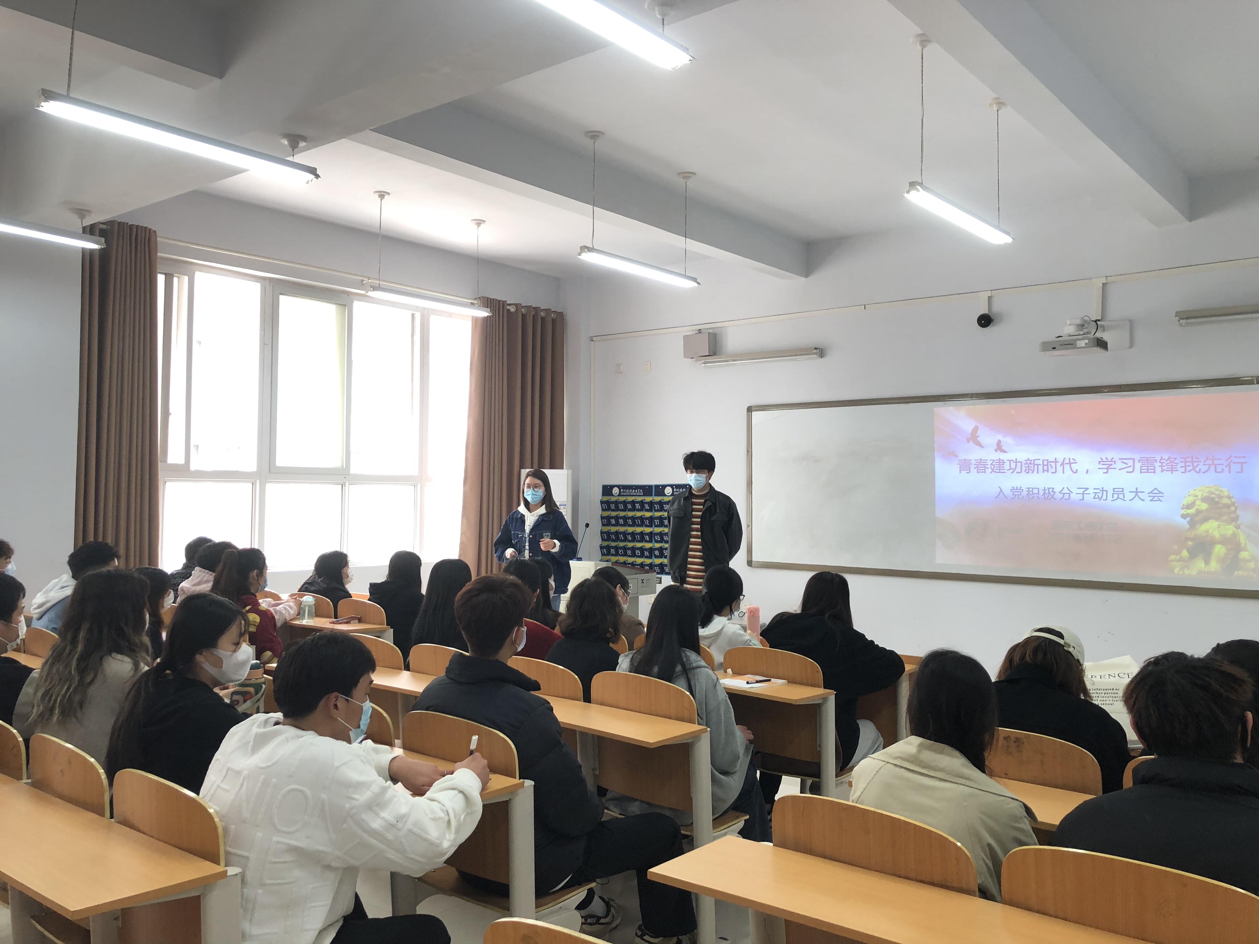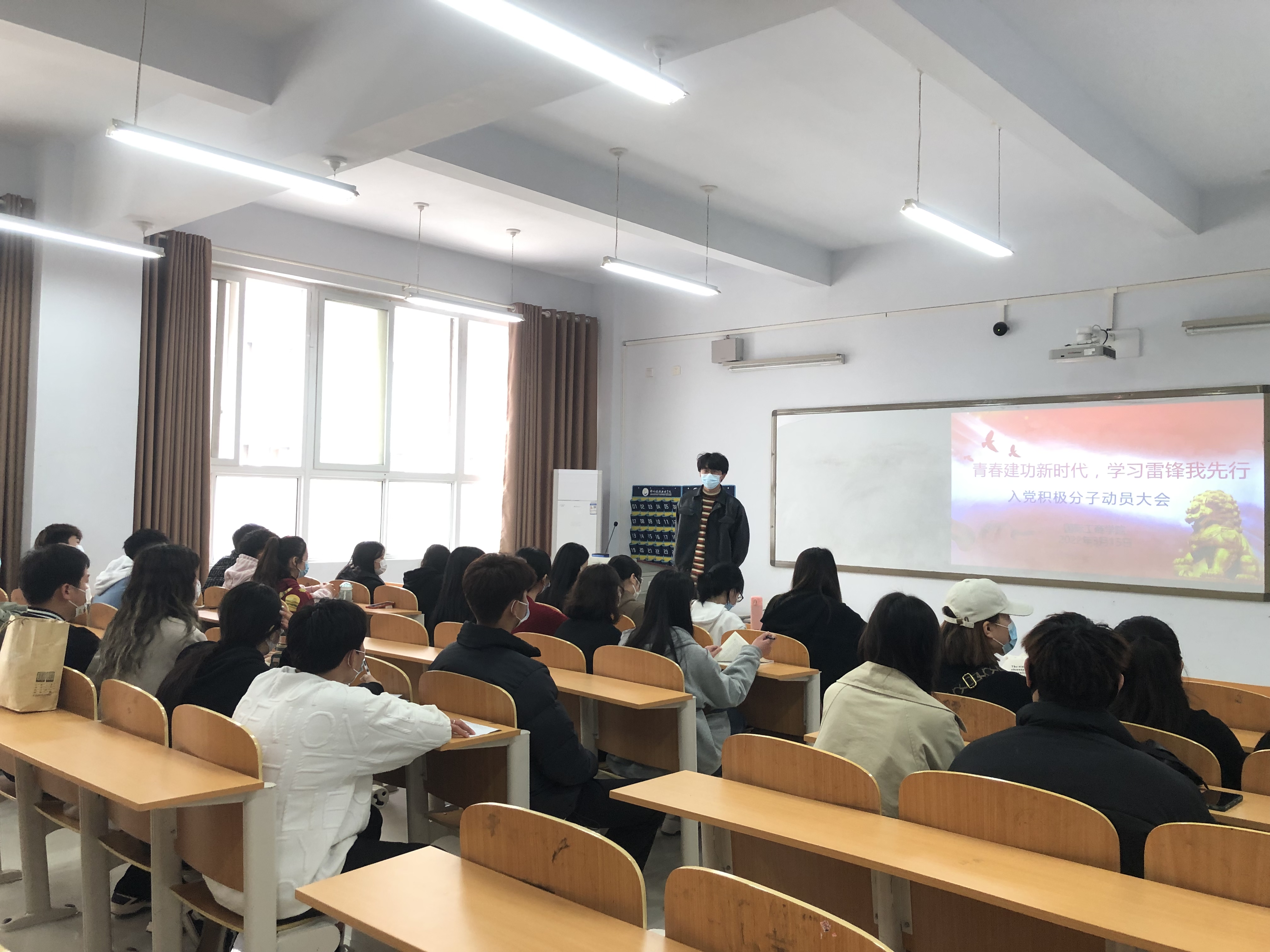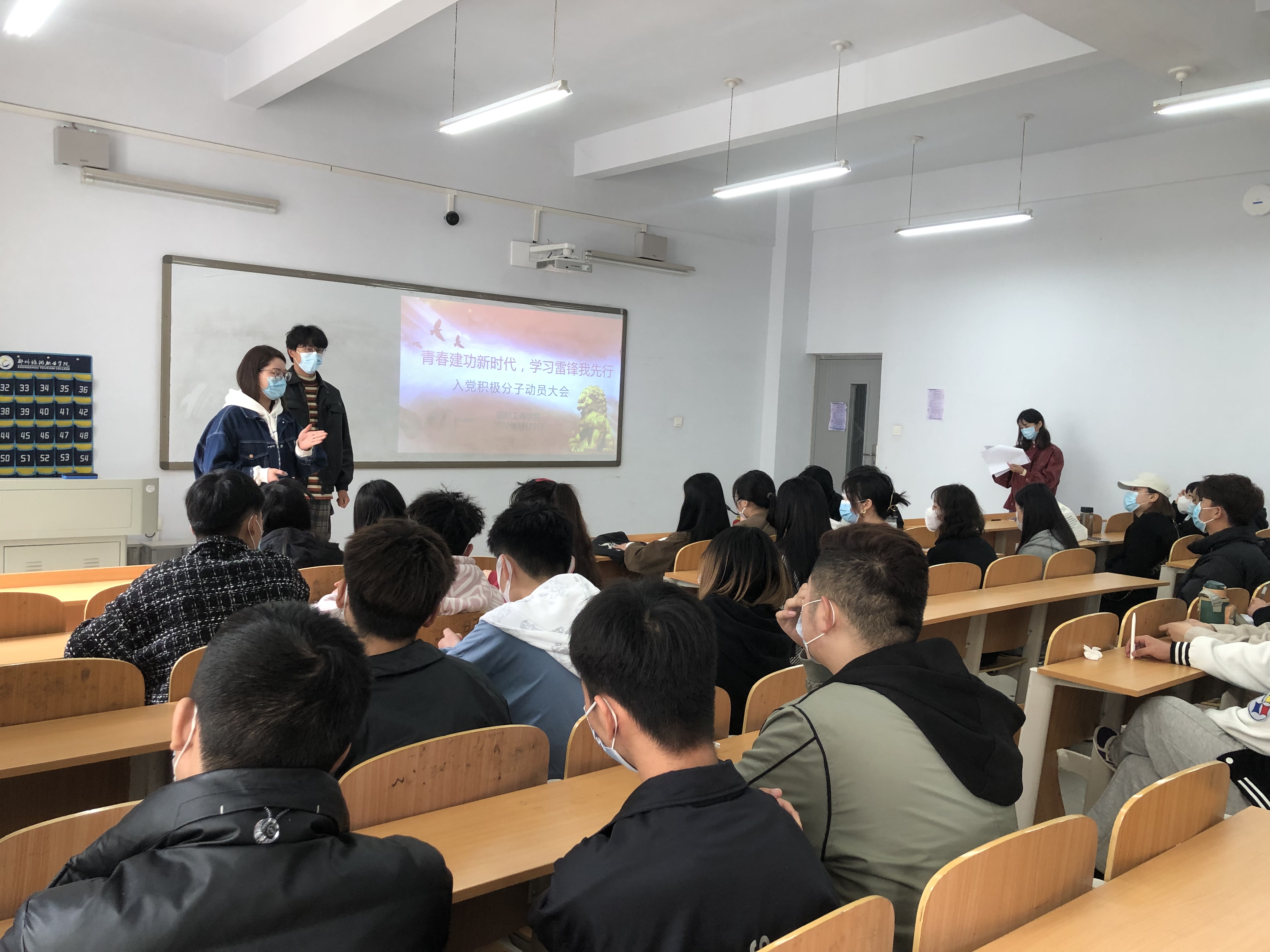 为了进一步学习雷锋精神,巩固党史学习教育成果,2022年3月15日中午,国际工商学院党支部在1B203教室召开“青春建功新时代,学习雷锋我先行”入党积极分子动员大会。会议由学生党支部书记葛秀丽主持,学生党支部副书记孙文霞、林翔鲲老师、20级所有入党积极分子参加。