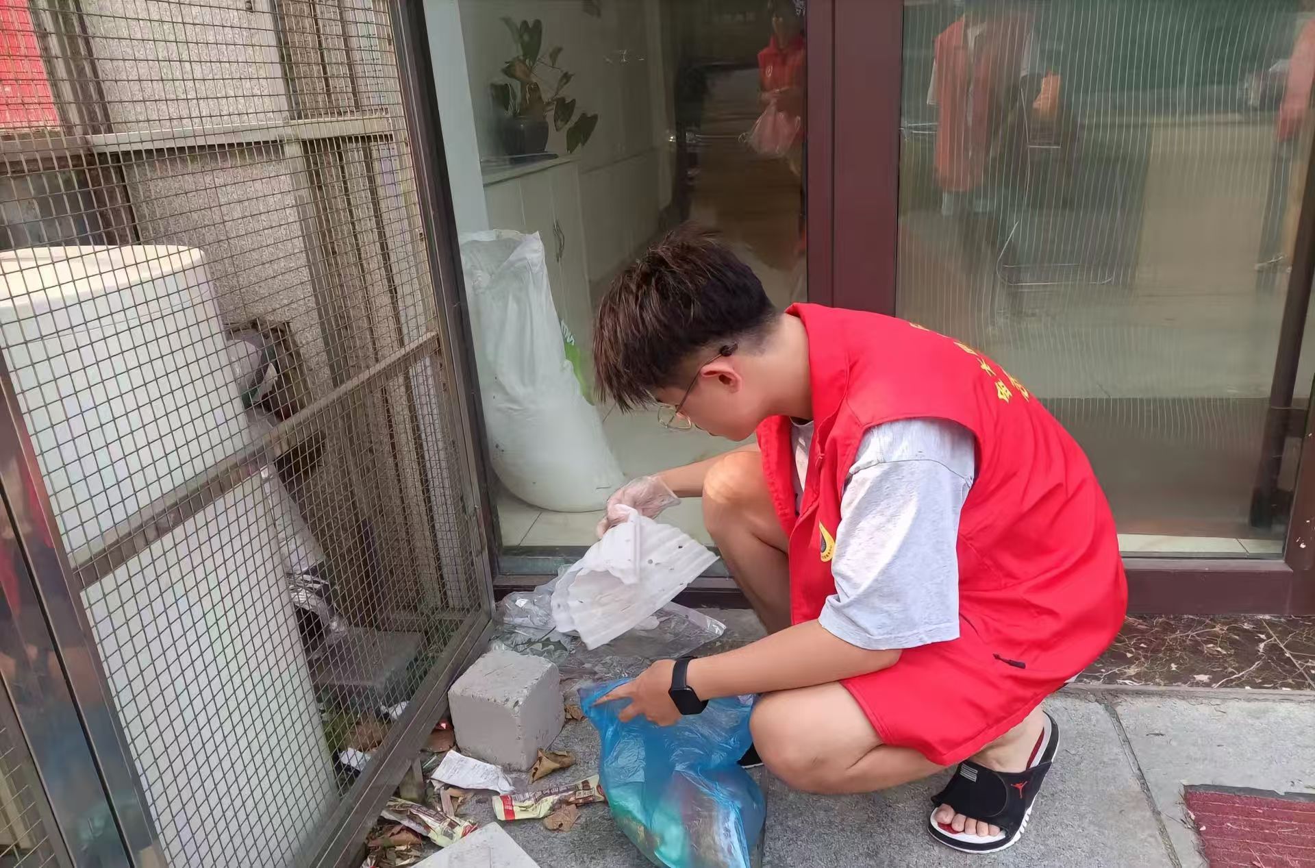 活动中,志愿者们分为三组展开行动:第一组沿主干道清扫落叶、纸屑等路面垃圾;第二组深入绿化带,用垃圾钳仔细夹取灌木丛中的烟头、塑料袋等隐蔽杂物;第三组负责擦拭宣传栏、健身器材,并清理楼道口堆放的零星废弃物。烈日下,志愿者们弯腰俯身、分工协作,不放过任何一个卫生盲区。在清理绿化带时,志愿者小王发现多个半埋在土中的饮料瓶,他耐心地用铲子辅助挖掘,“这些塑料垃圾降解慢,还会破坏土壤,必须彻底清除”。