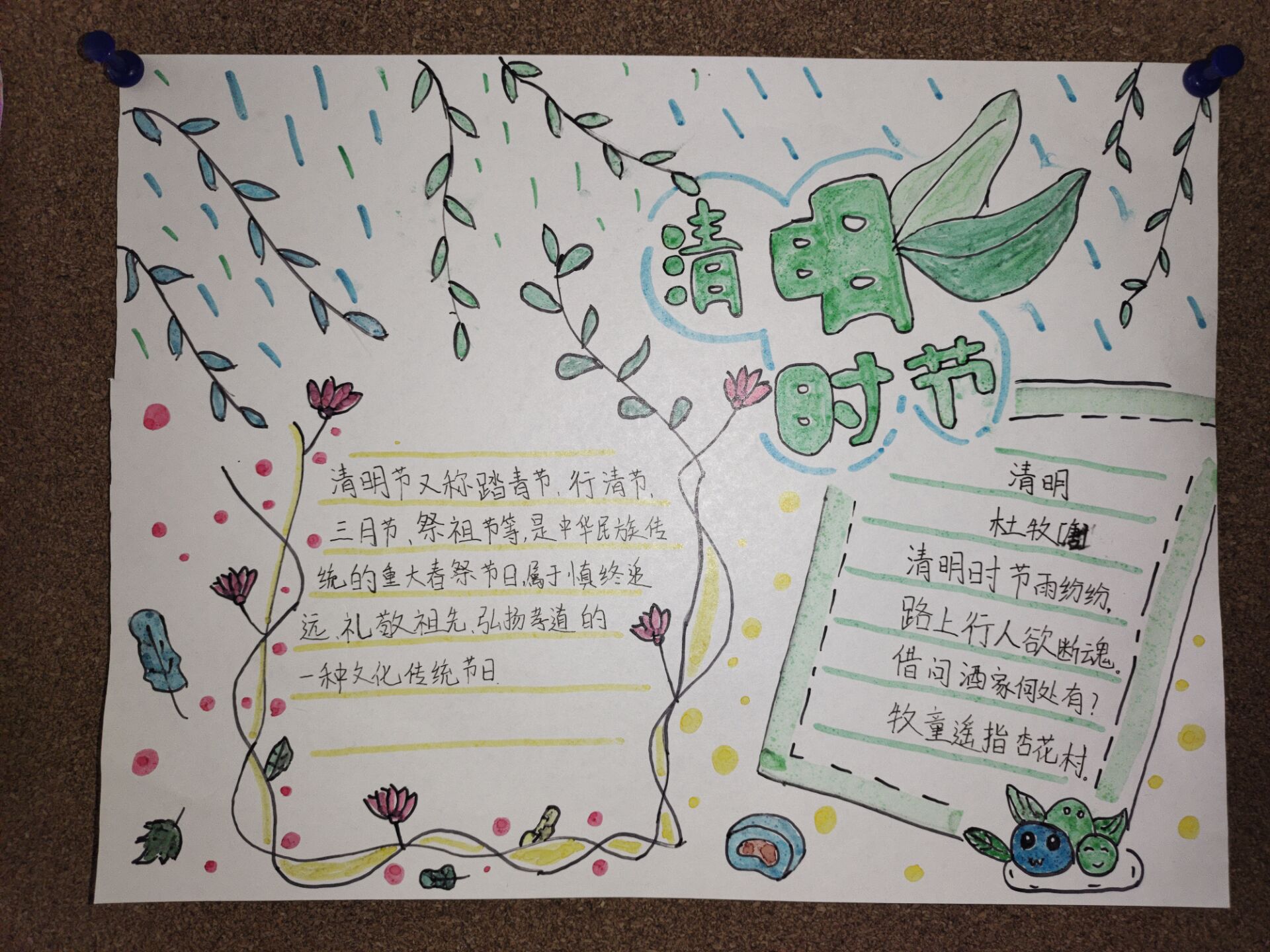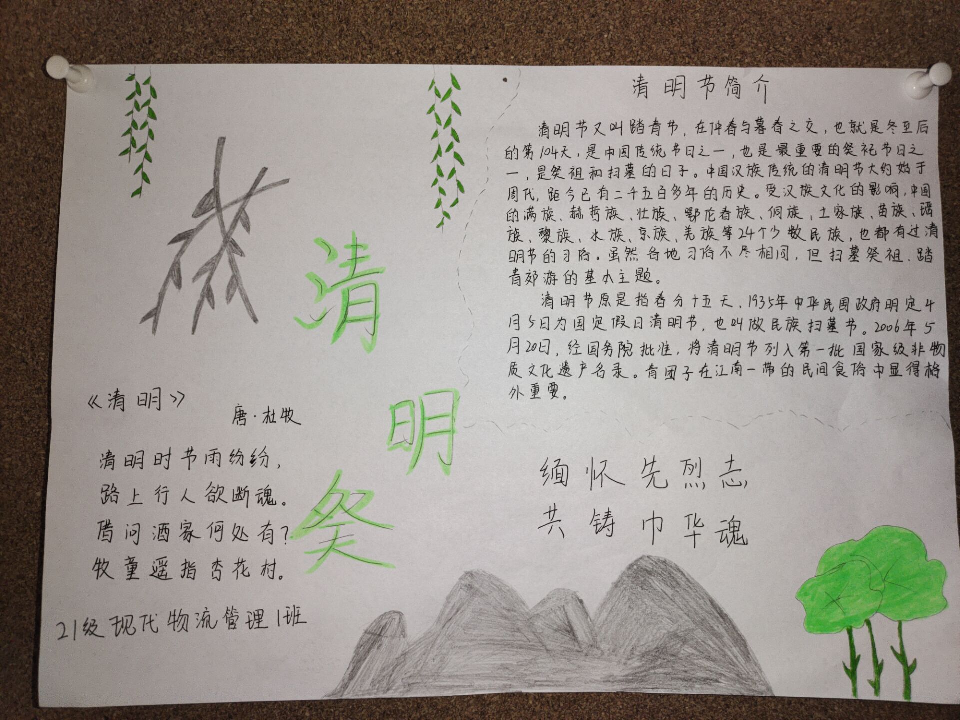 活动期间,同学们收集整理了有关清明节的传说和历史渊源,了解清明节的一些习俗。在手抄报中,他们用文字、图片、诗文及实际行动,倡导文明祭祀之风,表达了对革命先烈们的深切缅怀,表明了要珍惜时光,努力学习,做个新时代的合格接班人。
