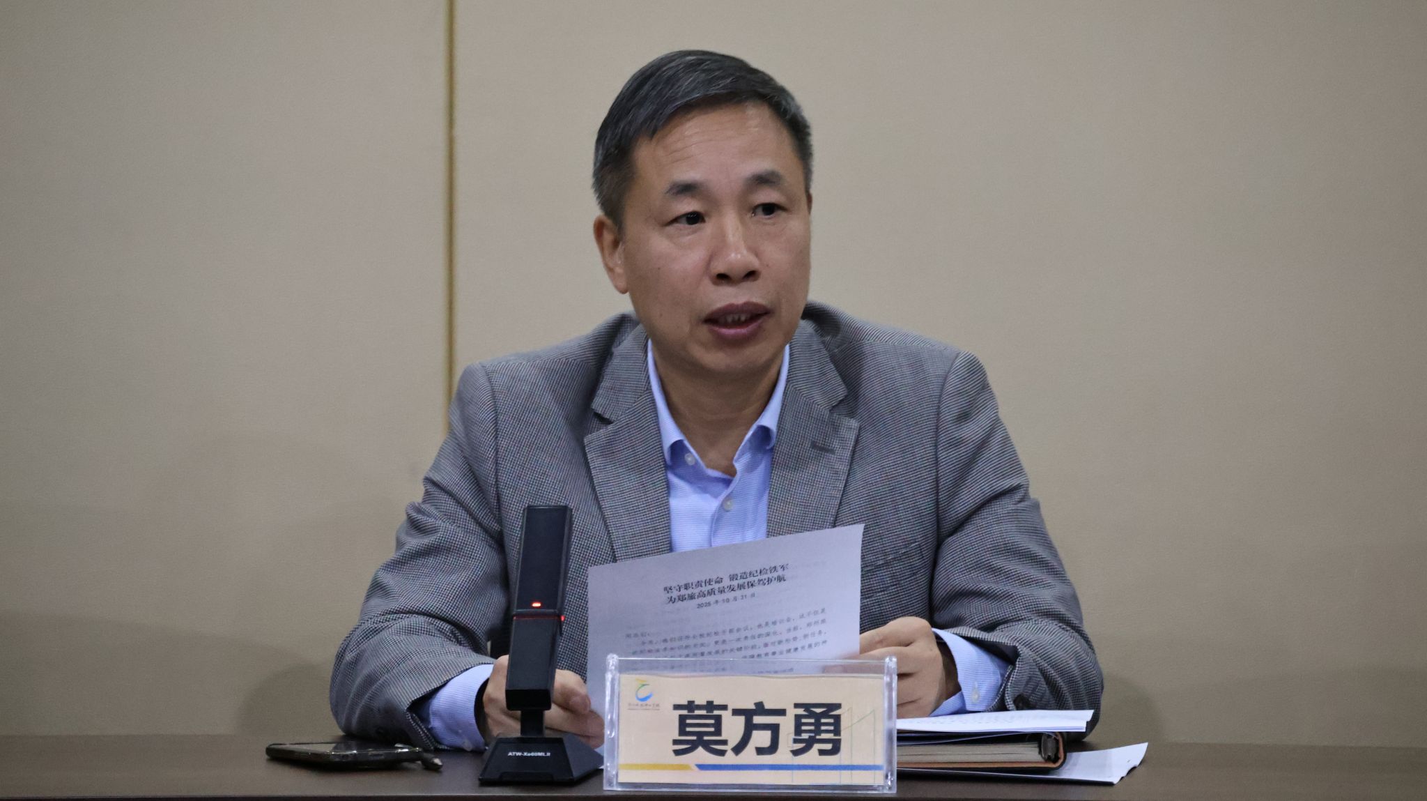 2025年10月31日上午,校纪委在行政楼306会议室召开“三化”建设年专题培训会议。校纪委书记莫方勇出席会议并讲话,校纪委委员、党总支和支部纪检委员、各单位纪检干事参加培训。会议由刘亚东主持。
