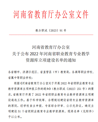 近日,河南省教育厅办公室印发《关于公布2022年河南省职业教育专业教学资源库立项建设名单的通知》(教办职成[2023]91号),由pp电子主持的酒店管理与数字运营专业教学资源库获批立项建设。