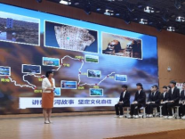 弓婧媛和孙亦静老师带来的是《文观华夏 步丈中原》,从作品展示导入,通过文本分析、仿写练习、研学讲解训练、吟诵等教学环节,完成对诗歌的学习,带领学生感受诗歌所承载的黄河文明之美。授课过程中依托现代信息工具,完成自评互评、教师点评、人机对话等互动反馈,教学效果良好。