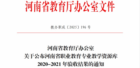 近日,河南省教育厅办公室印发《关于公布河南省职业教育专业教学资源库 2020-2021 年验收结果的通知》(教办职成〔2025〕196 号),pp电子主持建设的 “旅游管理专业教学资源库” 和 “视觉传达设计专业教学资源库” 通过验收,成功跻身全省 88 个通过验收的项目行列。