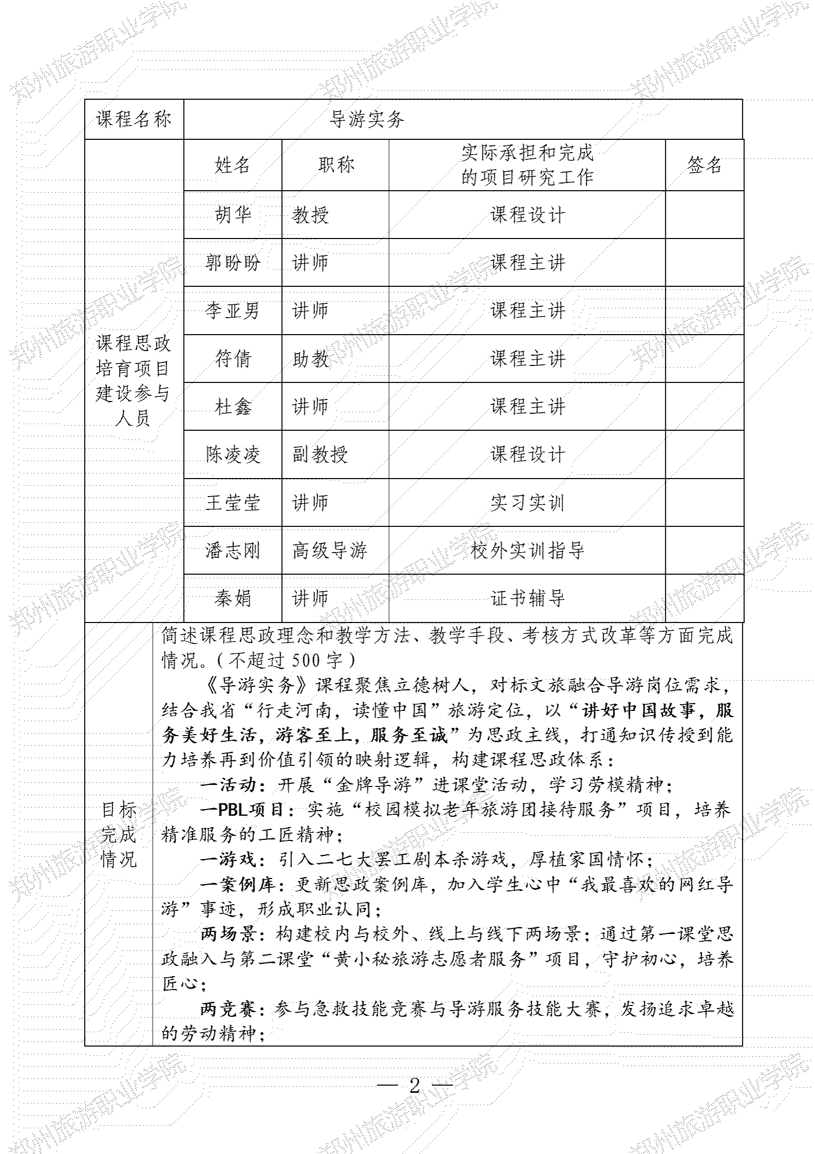 校级课程思政示范课程——《景区管理实务》结题报告展示