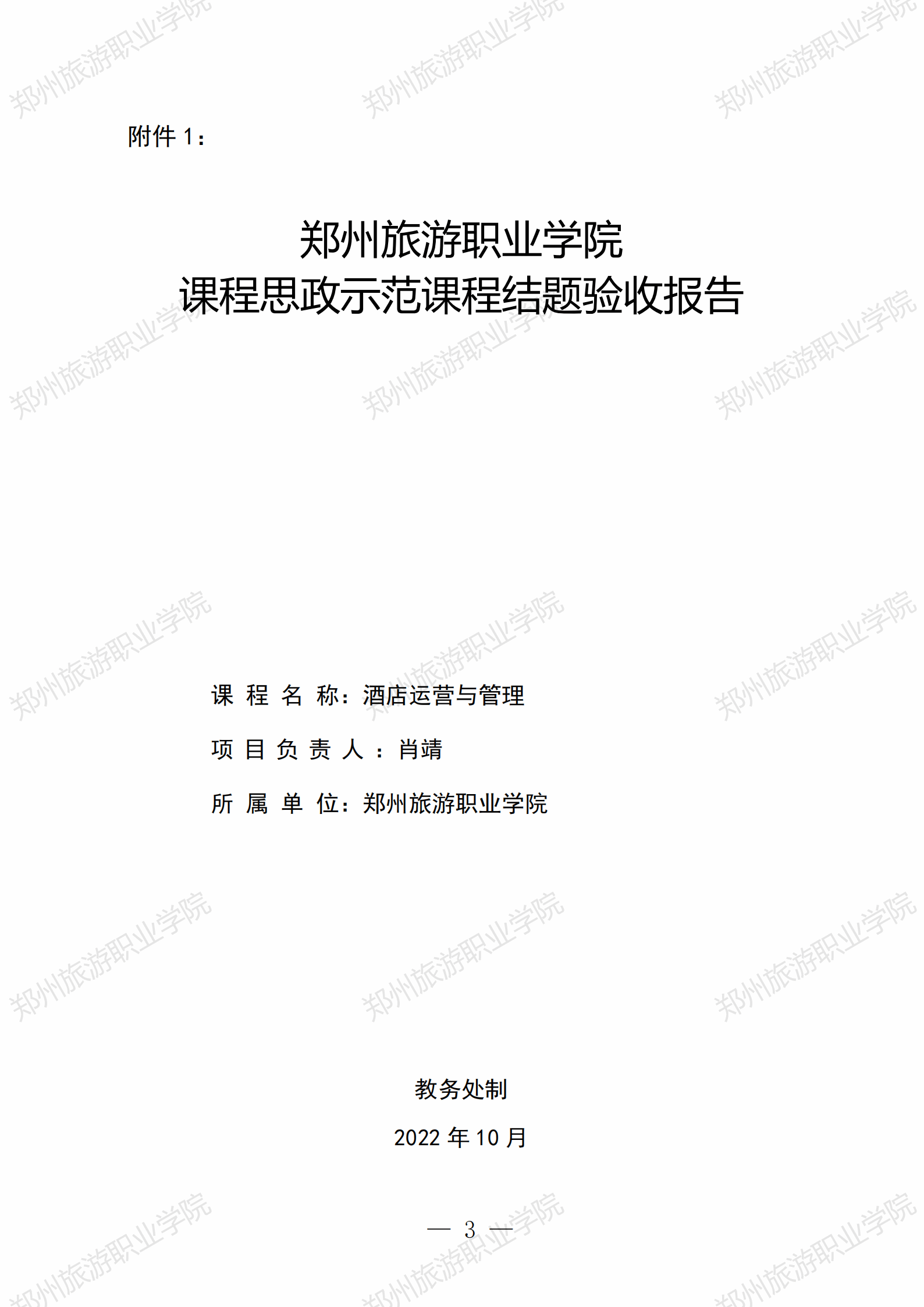 校级课程思政示范课程——《酒店运营与管理》结题报告展示