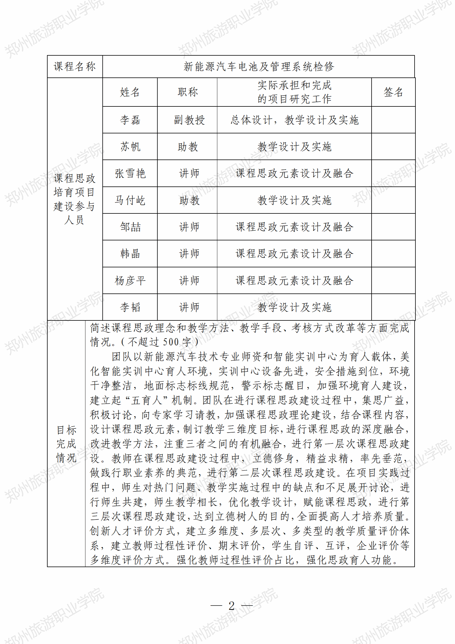校级课程思政示范课程——《新能源汽车电池及管理系统检修》结题报告展示