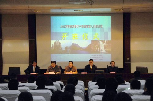 11月24日上午8时30分,2012年河南省景区中高级管理人员培训班开班仪式在我院信息中心一楼报告厅举行。仪式由学院副院长张建军主持,河南省旅游局人教处处长张建州、学院院长樊豫陇教授、旅游行业著名外籍专家德村志成博士等与会。来自全省各地市旅游局和旅游景区的58名学员及我院近200名师生参加了开班仪式。