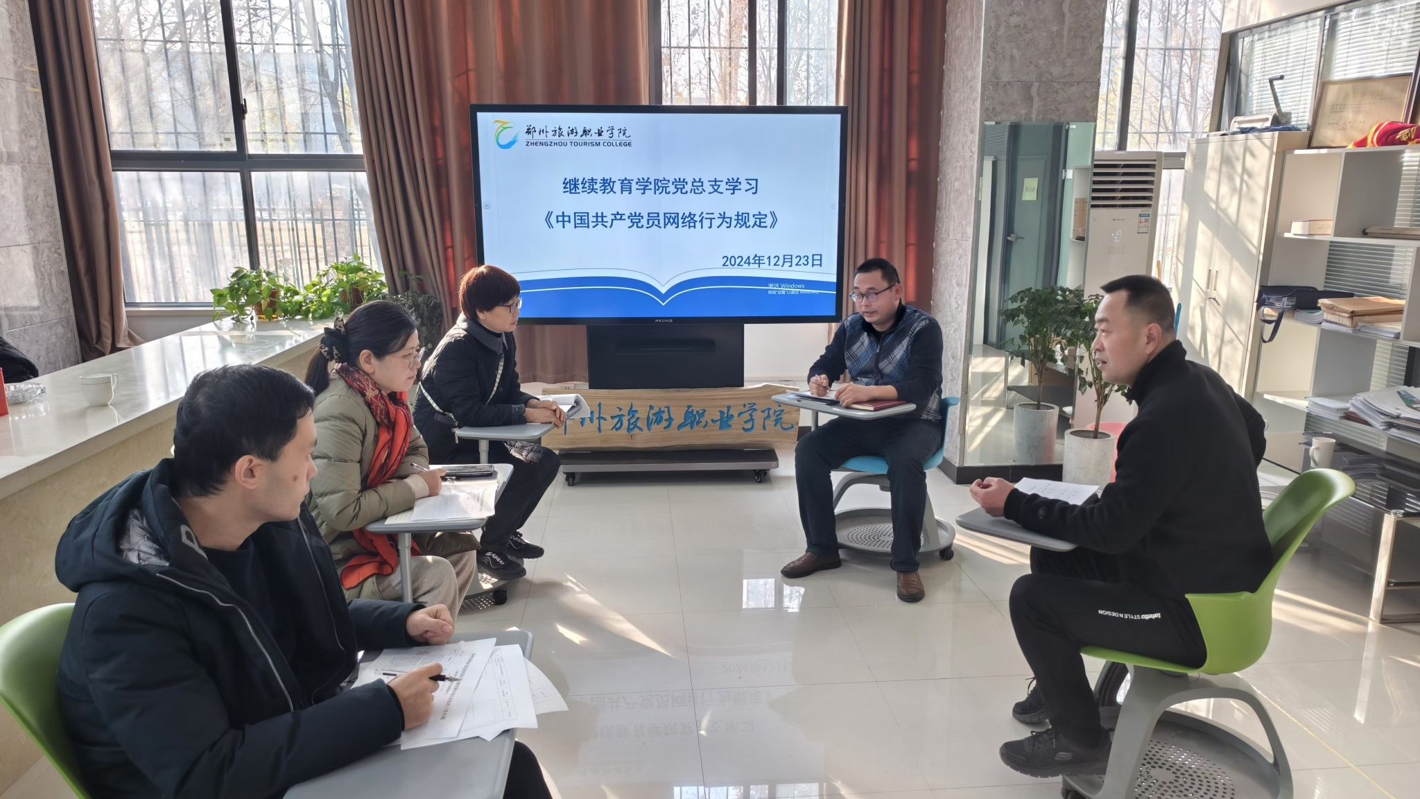 12月23日,继续教育学院党总支组织全体党员干部深入学习了《中国共产党党员网络行为规定》。此次学习活动旨在提高党员的网络素养,规范网络言行,共同营造风清气正的网络环境。
