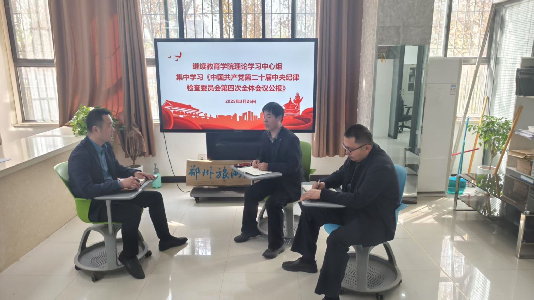 为深入贯彻落实全面从严治党要求,进一步加强学院党风廉政建设,3月26日,继续教育学院理论学习中心组在1A107会议室开展专题学习,集中学习《中国共产党第二十届中央纪律检查委员会第四次全体会议公报》。会议由党总支书记段伟主持,学院班子成员参加此次学习。