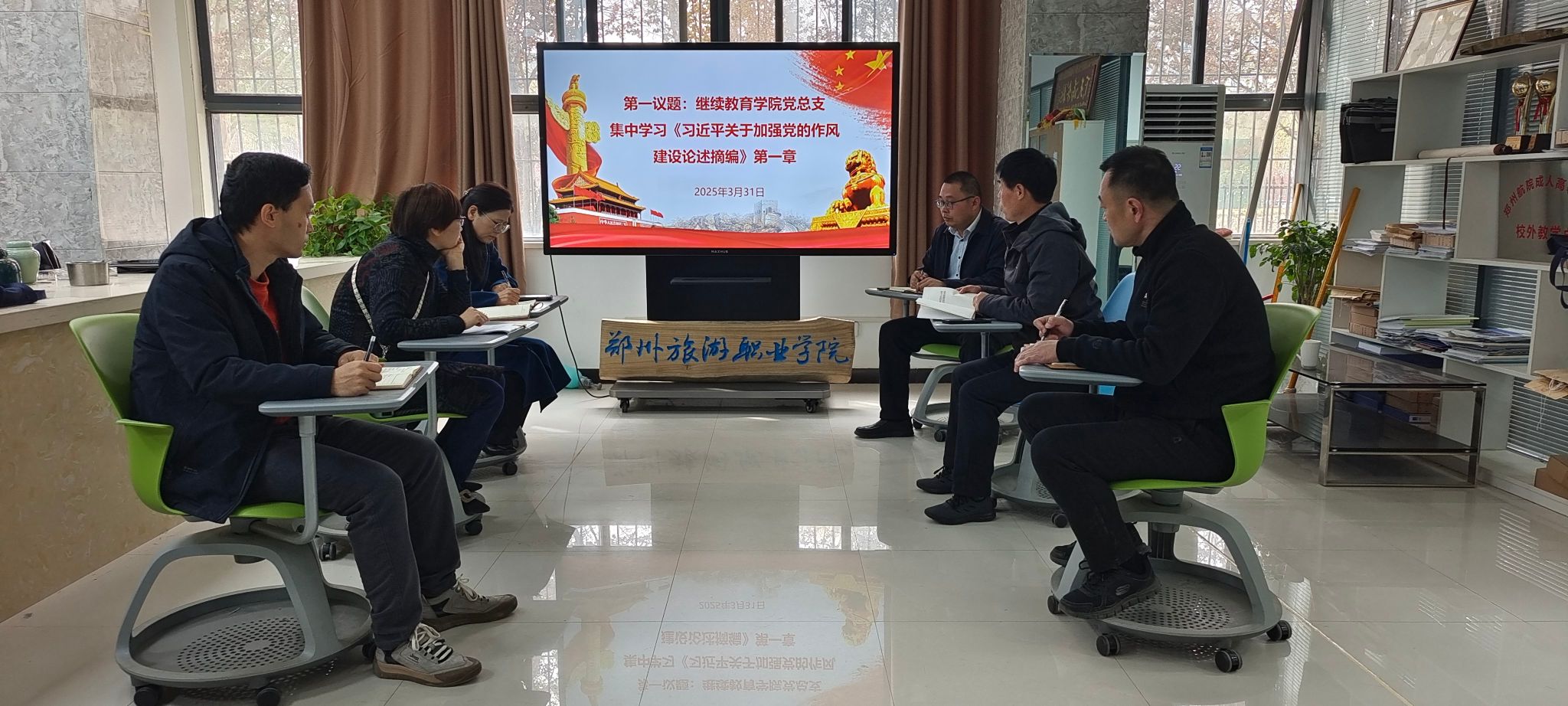 3月31日,继续教育学院党总支全体党员干部在1A107开展了一场意义深刻的集中学习活动,集中学习《习近平关于加强党的作风建设论述摘编》第一章的部分内容。会议由党总支书记段伟同志主持。