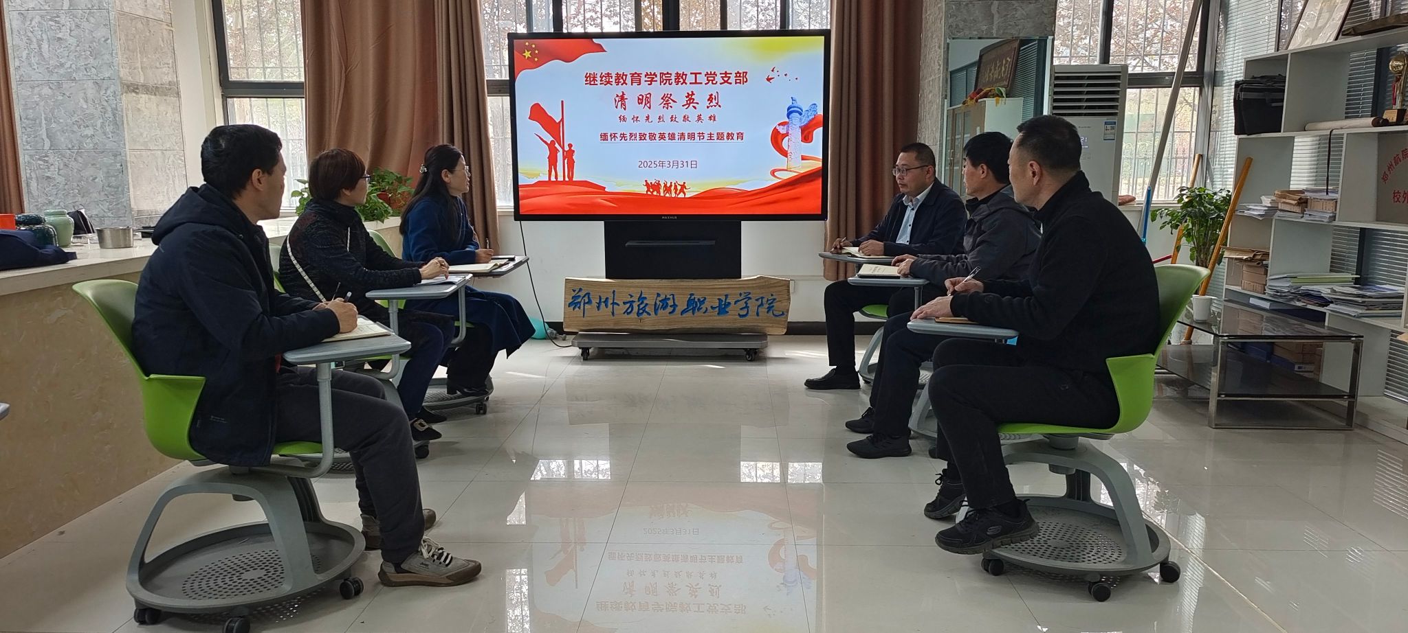 为缅怀革命先烈,传承红色基因,3月31日,继续教育学院党总支在1A107开展了“清明祭英烈”清明节主题活动,学院全体党员共同接受了一场深刻的爱国主义和革命传统教育洗礼。此次活动由党总支书记段伟同志主持。