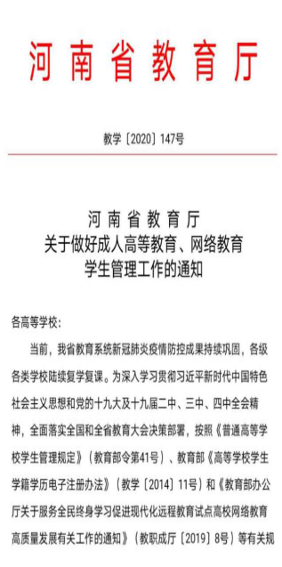 首先,继续教育学院副院长兼2020级专科班班主任冯铁勇讲话,他说召开这次班会的目的主要是想了解一下大家的学习情况,特别是在疫情期间,同学们是如何处理工学矛盾,开展工作学习生活三不误的以便全面了解情况,更好地安排下一步教学计划。接着王老师传达了教育厅教学〔2020〕147号《河 南 省 教 育 厅关于做好成人高等教育、网络教育学生管理工作的通知》文件精神,强调继续教育学院一定会按照教育厅的要求,严格把好三个关:招生关、教学过程管理关和毕业关。最后大家进入学习交流时间,同学们积极性很高,争相分享自己的工作、学习和生活感受,表示尽管受疫情影响,依然会克服种种困难,处理好工学矛盾,不耽误学习任务,严格按照学校要求,刻苦学习,保证完成学业,早日顺利毕业。