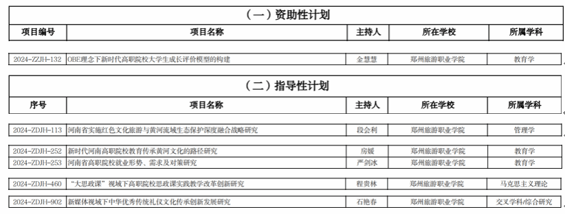 2024年度河南省高校人文社会科学研究一般项目经过学校推荐、教育厅组织专家评审和公示。pp电子共立项6项,其中资助性计划项目1项,指导性计划项目5项。具体如下: