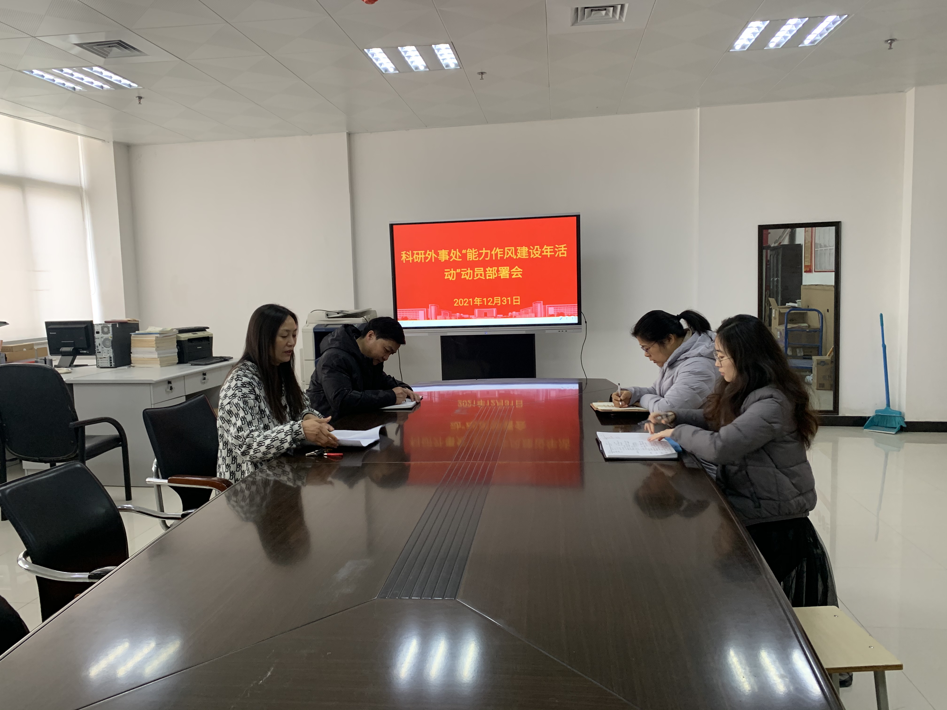 为深入学习贯彻郑州市委“能力作风建设年”活动动员部署会的会议精神,落实校党委《关于在全校开展“能力作风建设年”活动的实施方案》,科研外事处于2021年12月31日上午在1002会议室召开了“能力作风建设年活动”动员部署会。