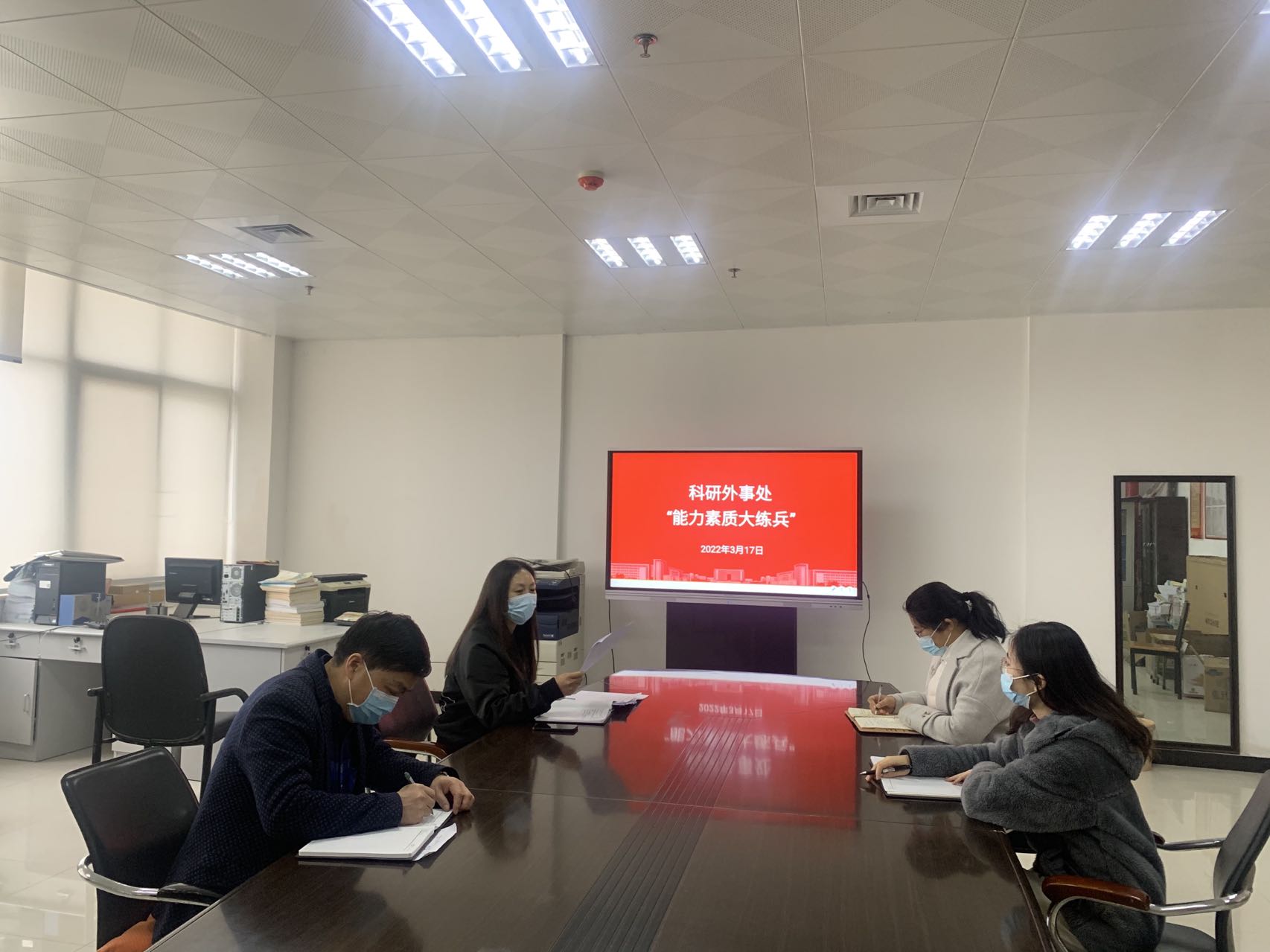3月17日上午,科研外事处开展“能力作风提升年”之“能力素质大练兵”推进会,会议由科研外事处处长胡红梅主持,部门全体人员参会。