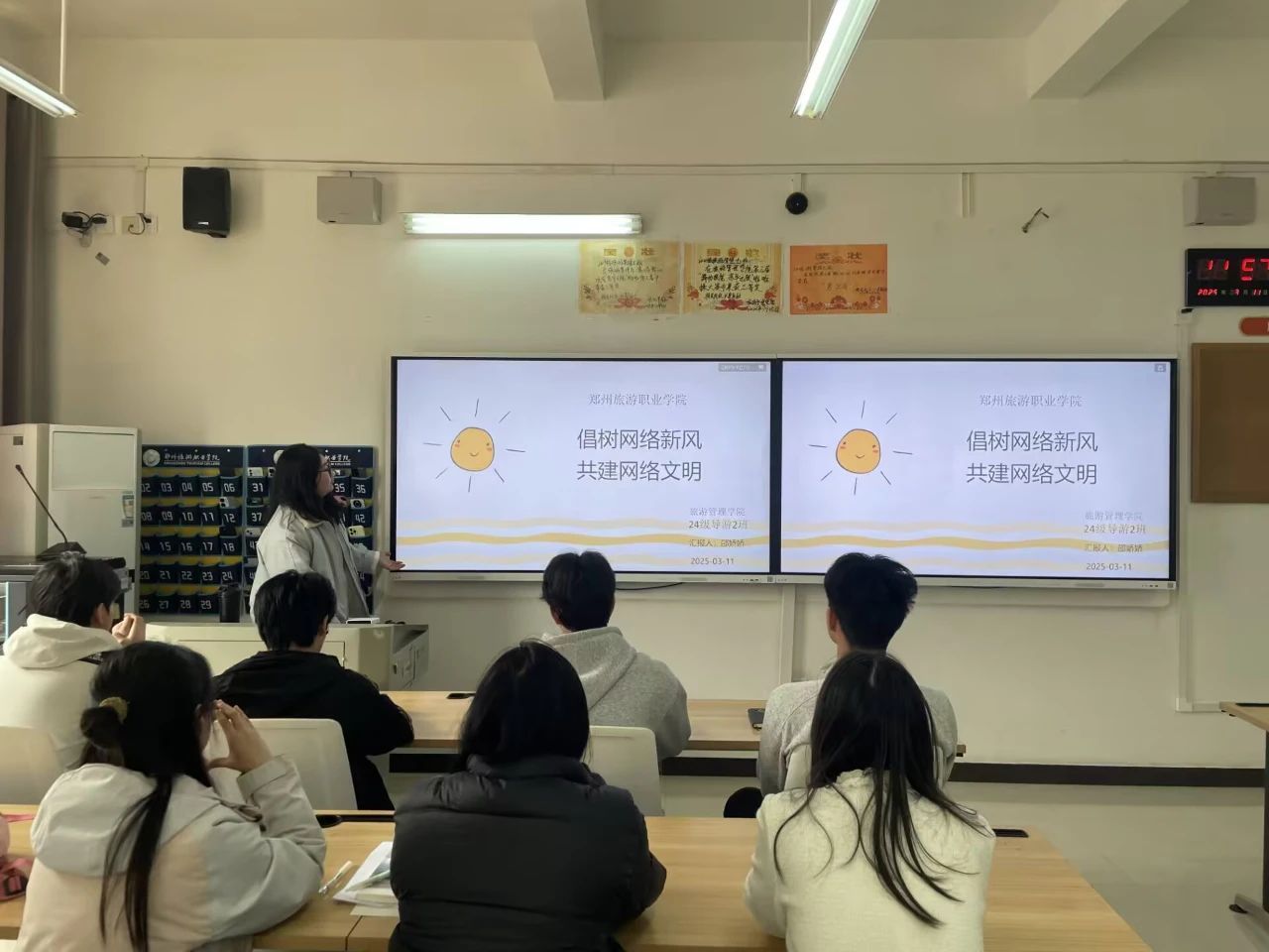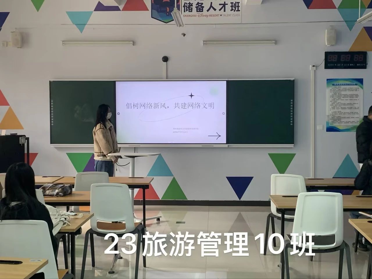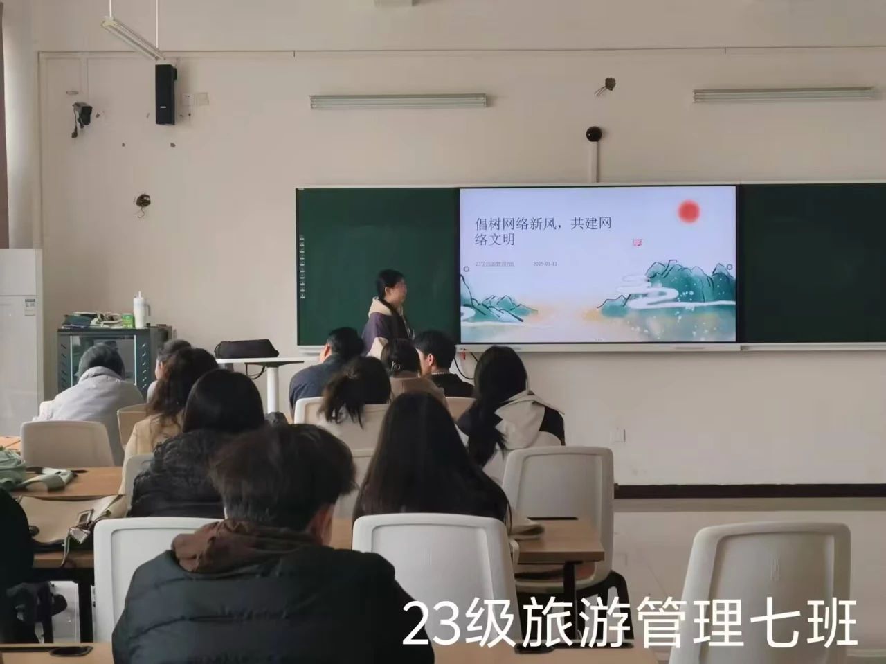 为培育新时代文旅数字公民,赋能网络空间命运共同体建设,3月10日,我院组织全院班级开展了"倡树网络新风,共建网络文明"主题教育活动,着力培养"懂法规、守底线、善发声"的文旅网络文明使者。