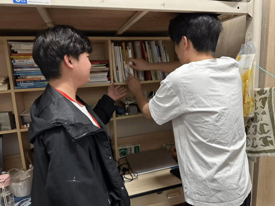 活动期间,新生学长深入各寝室进行系统性指导,从衣物立体收纳技法到空间规划策略,从季节性衣物的模块化整理到专业书籍的标签化分类管理,均进行标准化操作范式。随着整理工作纵深推进,宿舍空间实现科学化功能分区:生活区采用“季节轮换制”管理储物系统,实施标准化管理;学习区运用“黄金三角定位”提升使用效能;公共区域建立轮值维护制度确保长效治理。在此过程中,学生团队协作能力显著增强,宿舍凝聚力通过共同劳动得到淬炼提升。