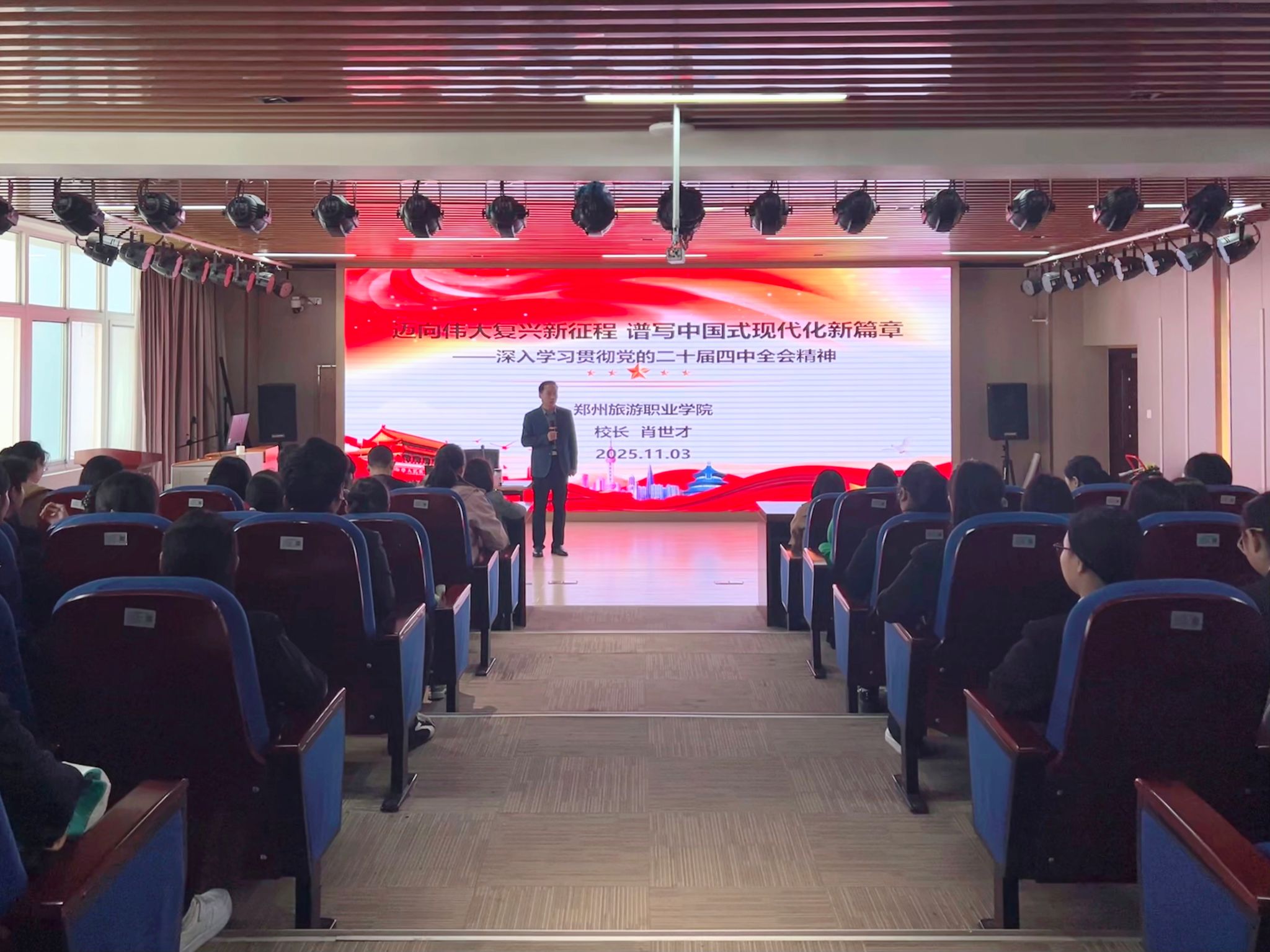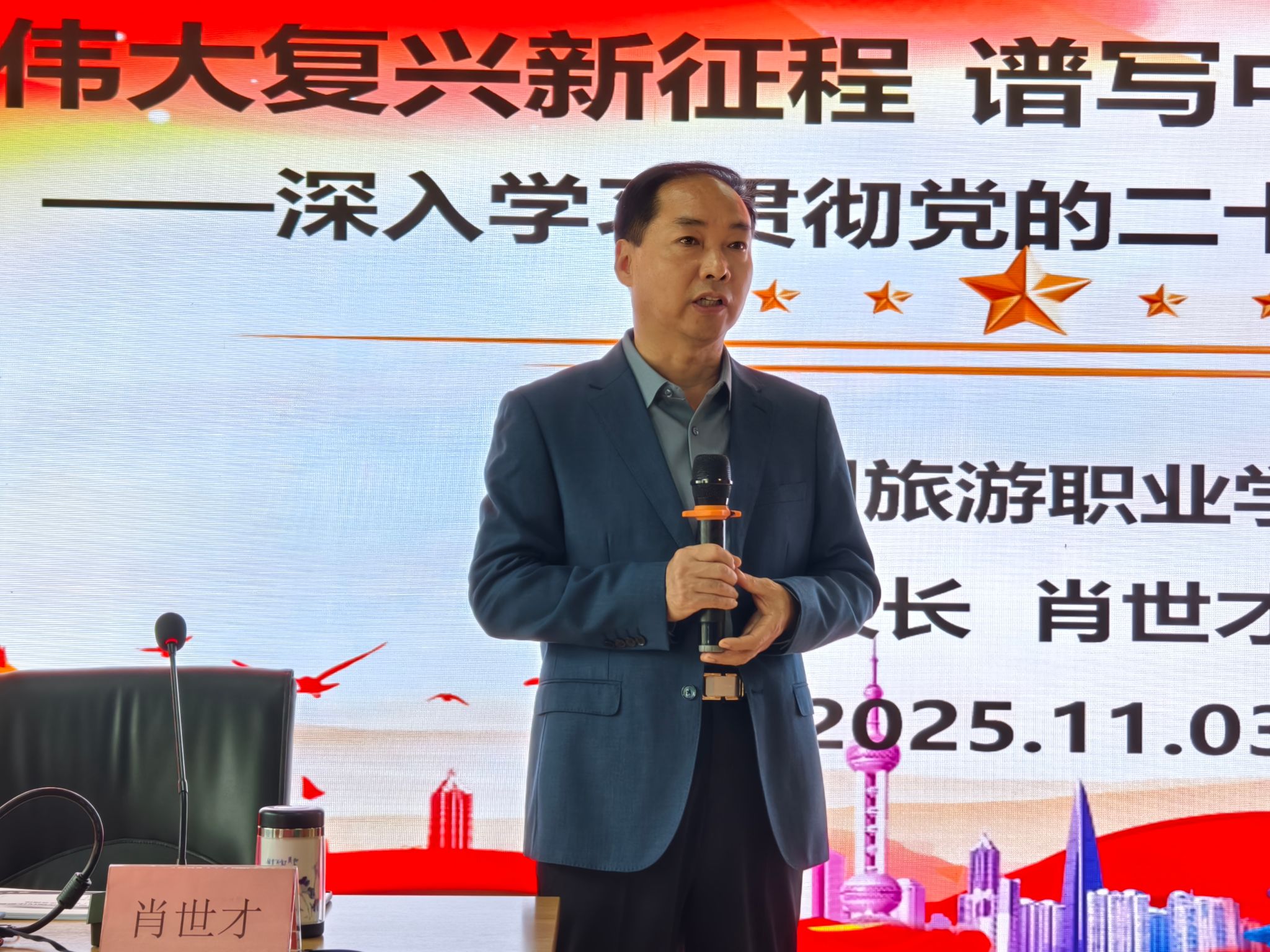 为深入学习宣传贯彻党的二十届四中全会精神,引导广大师生将思想和行动统一到党中央的决策部署上来,11月3日上午,校长肖世才教授在5号楼云景点实训室为旅游管理学院全体师生作了题为《迈向伟大复兴新征程 谱写中国式现代化新篇章》的专题辅导讲座。旅游管理学院党总支书记陈海彬、副书记张楗让及师生代表参加讲座,讲座由旅游管理学院院长黄安定主持。