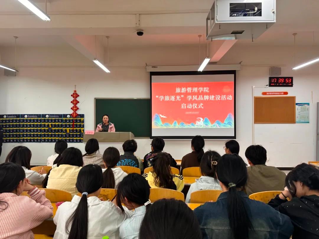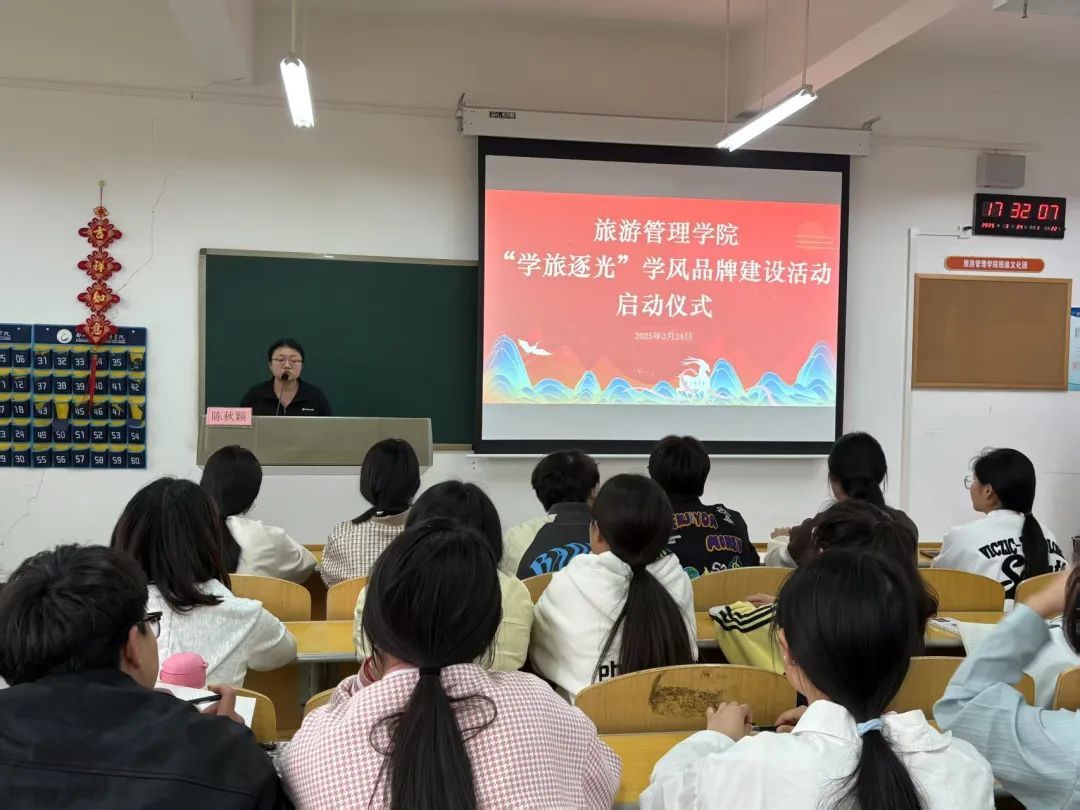 为深入贯彻学校对于学风建设的相关要求,进一步提升我院整体学习风貌,营造积极进取、奋发向上的浓厚学习氛围,切实增强学生的学习积极性与主动性,助力学生全面成长与发展,我院于3月24日在5A402举办了以“学旅逐光”为主题的学风品牌建设活动启动仪式。学工办代主任王滔水、团总支代书记张卿颜、辅导员陈秋颖出席仪式,全体团学干事和学生代表参加仪式。