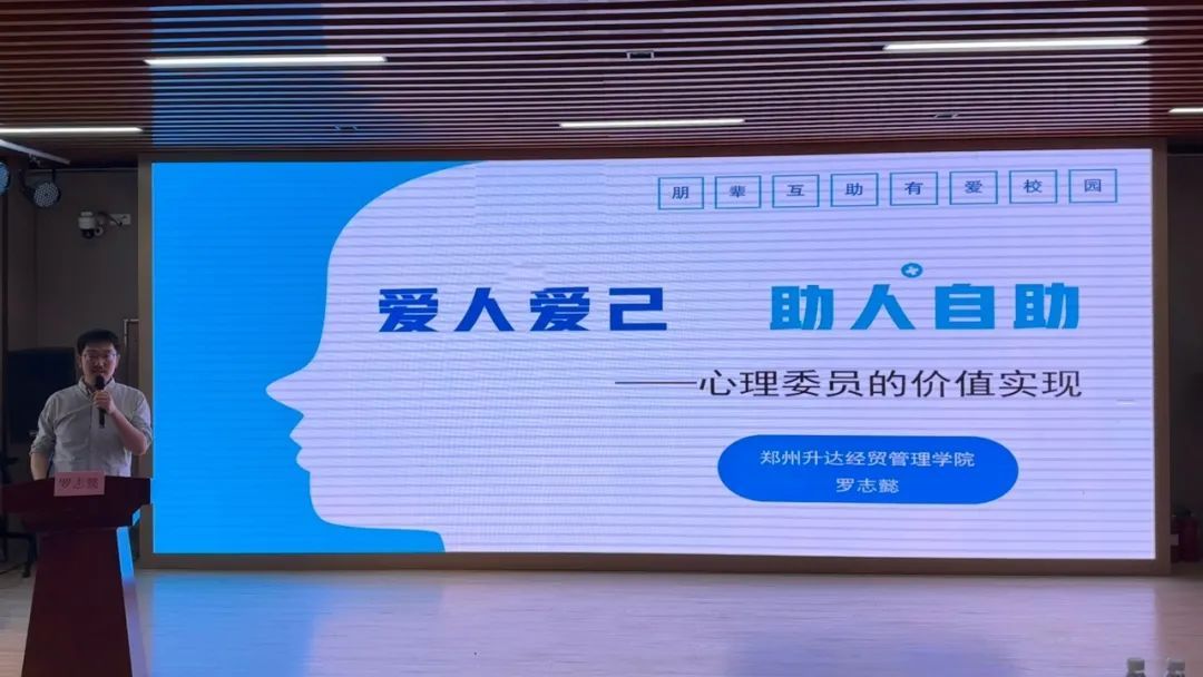 此次讲座于我是宝贵学习经历,让我明晰心理委员职责价值。心理委员是连接同学与学校心理健康支持体系的桥梁“爱人爱己”并非简单口号,而是心理健康的基石。我明白了只有先照顾好自己的心灵花园,才能有足够能量去关爱他人。未来,我会将所学运用到实际,秉持“爱人爱己,助人自助”信念,在助人路上稳步前行,为构建有爱校园贡献力量。