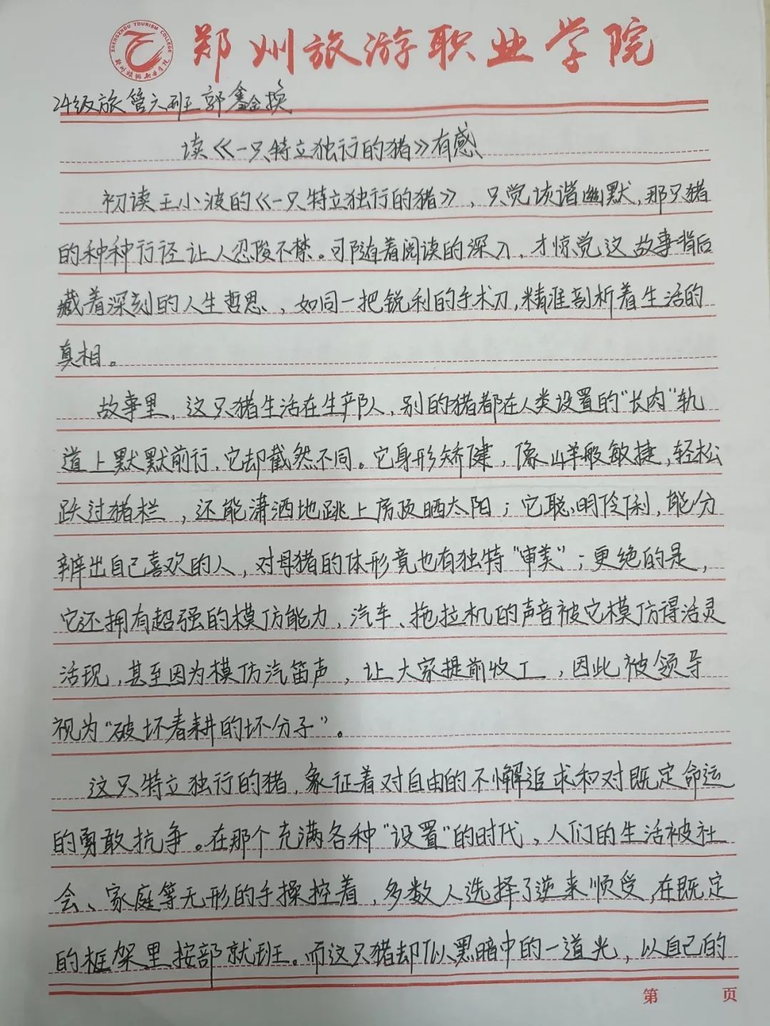 《一只特立独行的猪》让我明白,自由并非遥不可及的梦想,它就藏在我们内心深处,等待着我们去唤醒。在这个纷繁复杂的世界里,我们要像那只猪一样,敢于打破常规,勇敢地追求自由,做一个真实、独立、有思想的人。