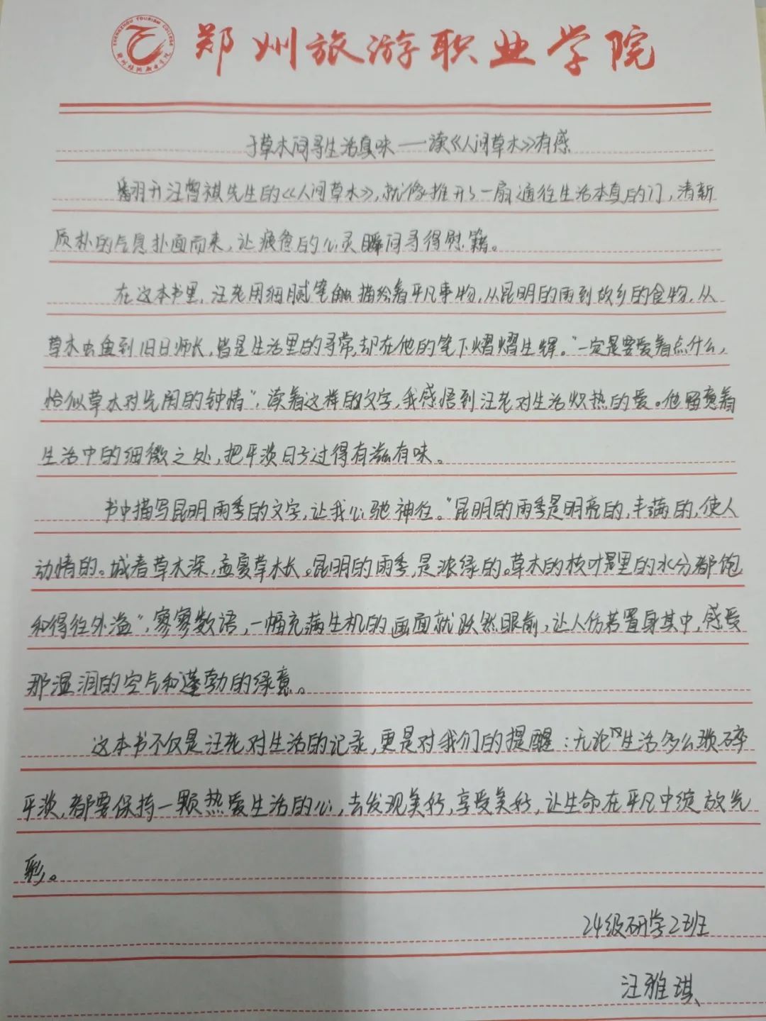 读《人间草木》,让我懂得生活的美无处不在,它藏在一草一木、一茶一饭、一人一事之中。我们应放慢脚步,用心去感受生活的细节,珍惜每一个平凡日子里的小确幸。正如先生所说“一定要爱着点什么,恰似草木对光阴的钟情”,对生活的热爱,是我们在这纷繁世界中保持内心安宁与温暖的力量源泉 。