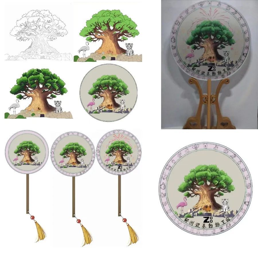 特色点睛: 这绝非一把普通的扇子!它将银基动物王国的灵魂巧妙浓缩:扇面中央是恢弘的“生命之树”,边缘点缀着园区明星动物的灵动剪影白虎、长颈鹿。想象一下,扇动间,仿佛动物们在树影婆娑间嬉戏。