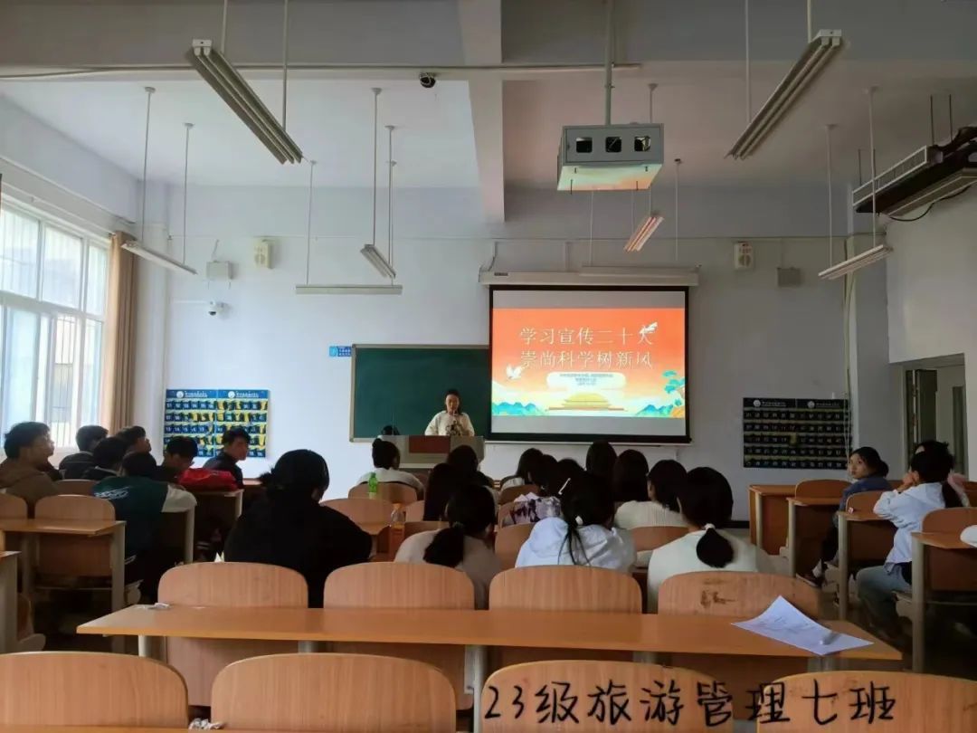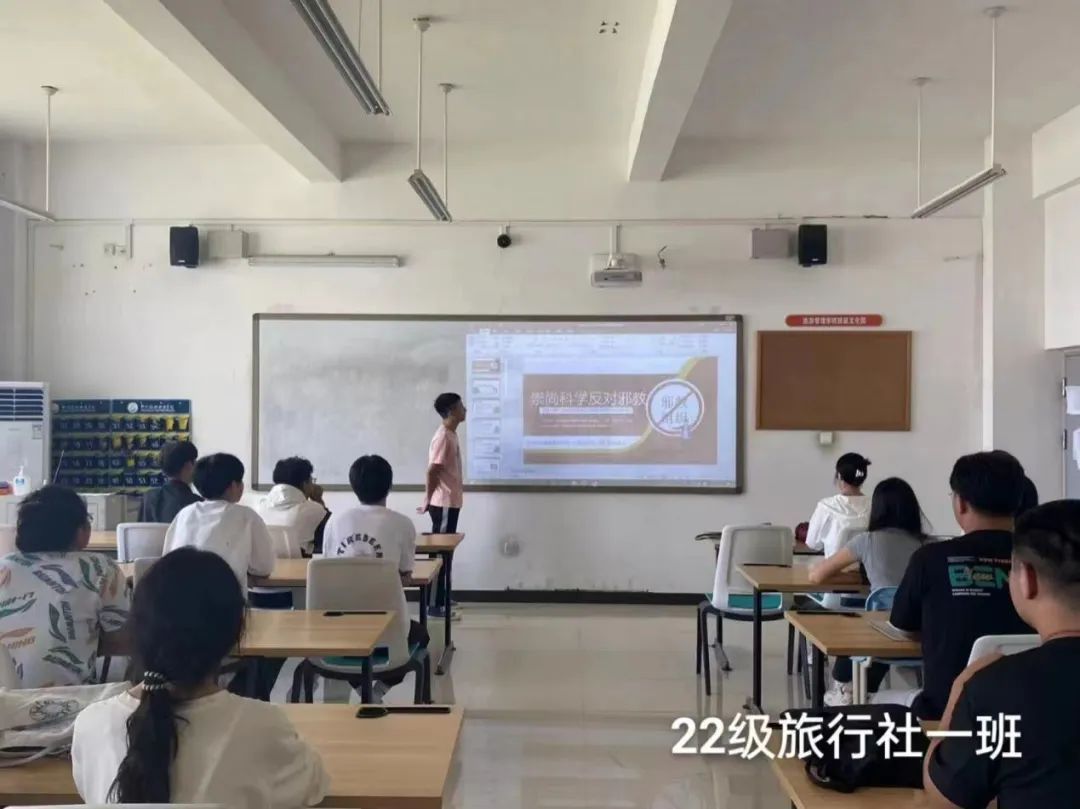 10月11日,旅游管理学院组织召开“学习宣传二十大,崇尚科学树新风”主题班会,会上班主任老师组织同学们积极发言,分享自己对学习“宣传二十大、崇尚科学树新风”的理解和感悟。同学们纷纷表示,要以科学为导向,以新风为追求,积极投入到学习和生活中,为我国的发展贡献自己的一份力量。同时,班主任还通过案例,加深同学们对邪教本质的认识,使同学们了解宗教与邪教区别以及邪教对社会的危害,明确邪教是非法组织的性质。随后班主任组织同学们进行讨论,让同学们表达自己对邪教的看法,并就如何抵制邪教提出了各种建议。同学们表示要用科学知识武装自己的头脑,增强抵御邪教的能力;要及时发现和制止邪教的传播;要积极参与反邪教宣传活动,为构建和谐校园环境贡献自己的力量。