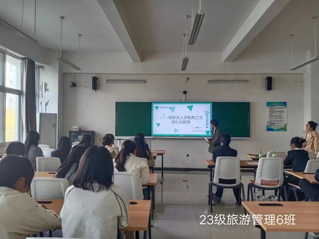 为进一步加强学生文明礼仪教育,切实规范学生行为,提高学生对文明礼仪的重视,10月25日,郑州旅院旅游管理学院组织召开“2023级新生入学教育之文明礼仪教育”主题班会,班会由各班班主任主持。