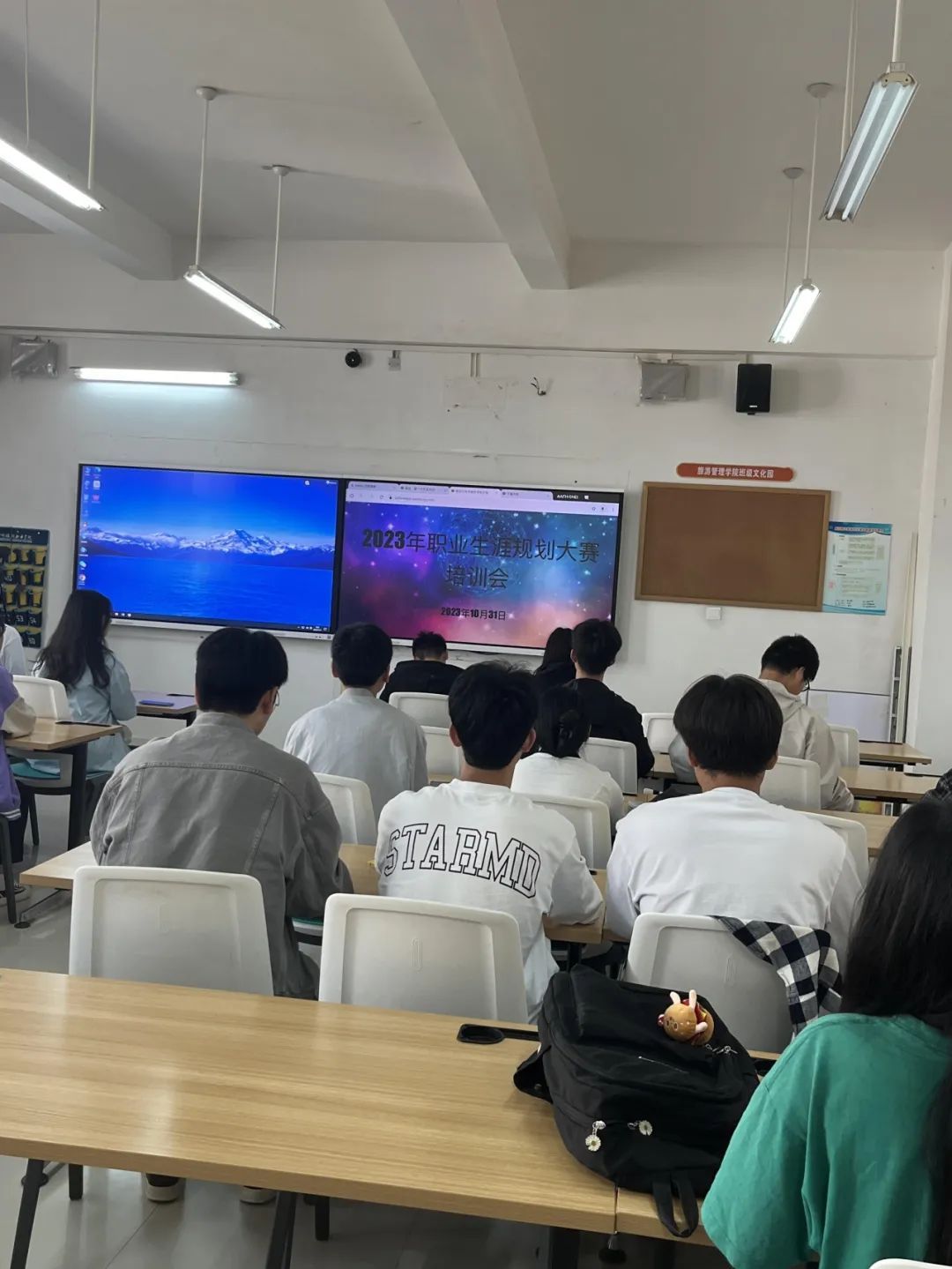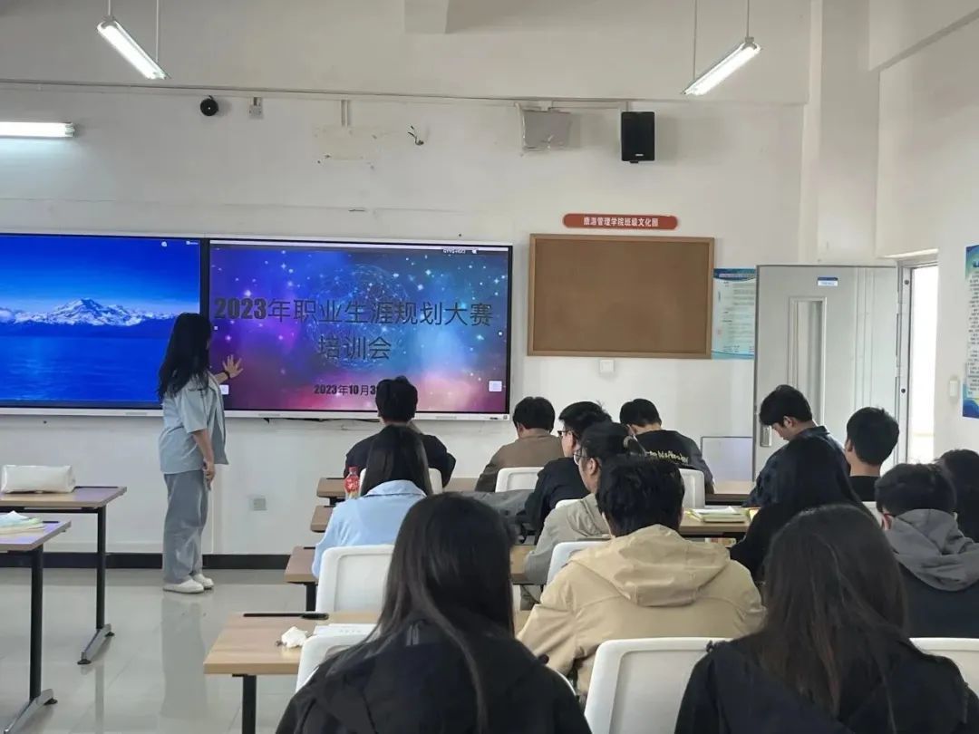 为加强学校生涯教育和就业指导,增强学生生涯规划意识,指导其及早做好就业准备,2023年10月31日,旅游管理学院组织各班召开大学生职业生涯大赛培训会。