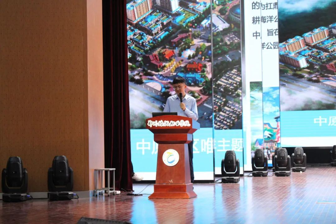 接下来实习合作企业郑州海昌海洋公园人力招聘部主管韩帅先是分享了海昌企业文化,然后以企业的角度从懂尊重、知团结、好心态、要学习、有修养、记坚持六个方面谈了谈对同学们的未来期许。