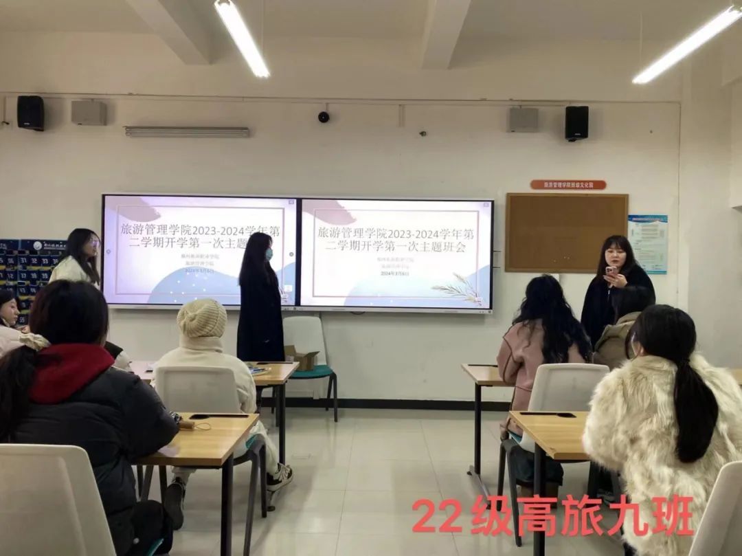 春风迎学子,新年新气象。为激发学生新学期的学习热情,引导学生更好地适应新学期生活,3月6日,旅游管理学院组织召开了“开学第一课”主题班会,班会由各班班主任主持。