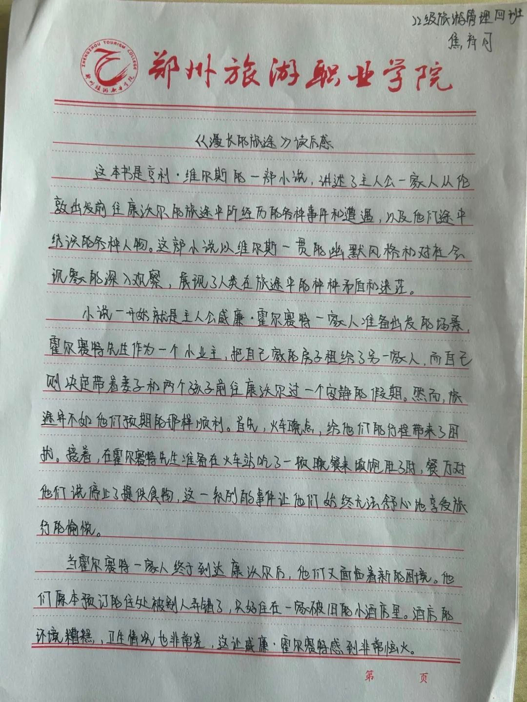 20级五年制旅游管理二班 花馨怡