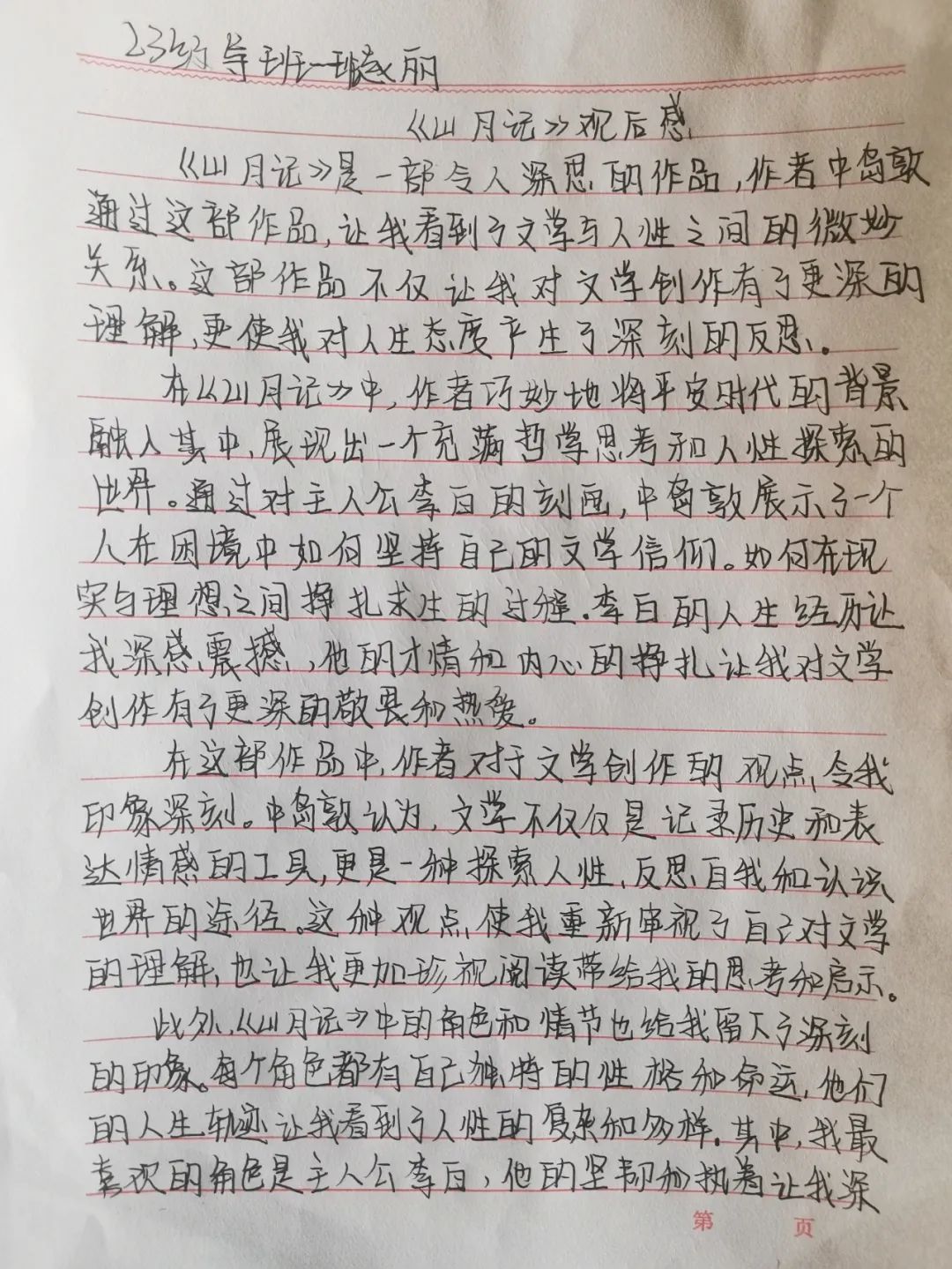 总之,《山月记》是一部充满哲学思考和人性探索的作品,它让我对文学和人生态度有了更深的理解和认识。这部作品不仅让我领略了平安时代的风貌,更让我在思考和感悟中不断成长。对于这部作品以及其所蕴含的深刻寓意,我充满了喜爱和敬意。它将成为我人生旅途中一盏指引前行的明灯,照亮我前行的道路。