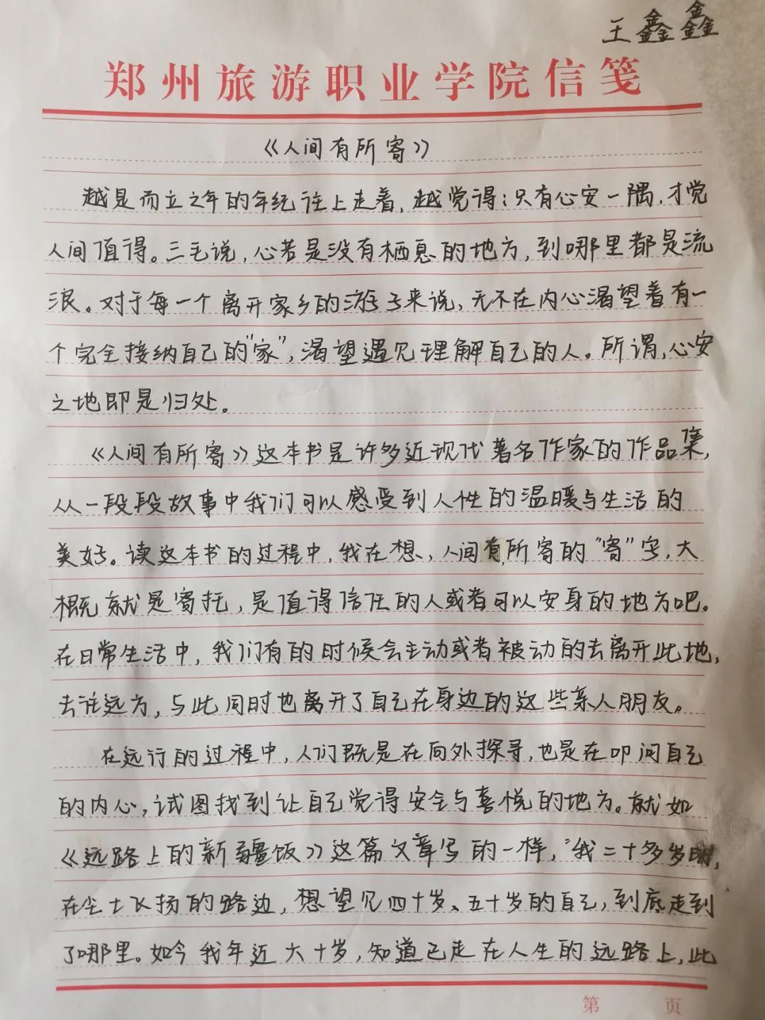 23级旅游管理二班 王鑫鑫