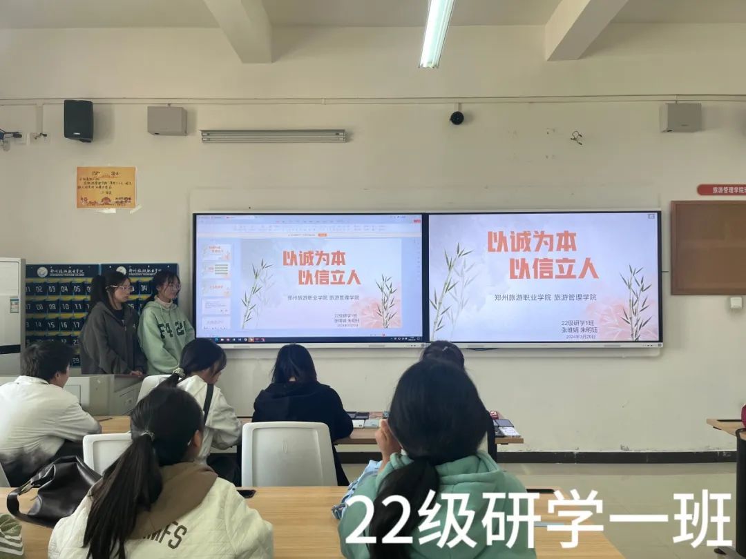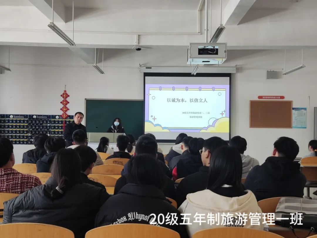 为践行社会主义核心价值观,树立诚信理念,积极倡导和弘扬诚实守信良好风尚,构建诚信文明校园。3月19日,郑州旅院旅游管理学院组织在校生召开“以诚为本,以信立人”主题班会,班会由各班班主任主持。