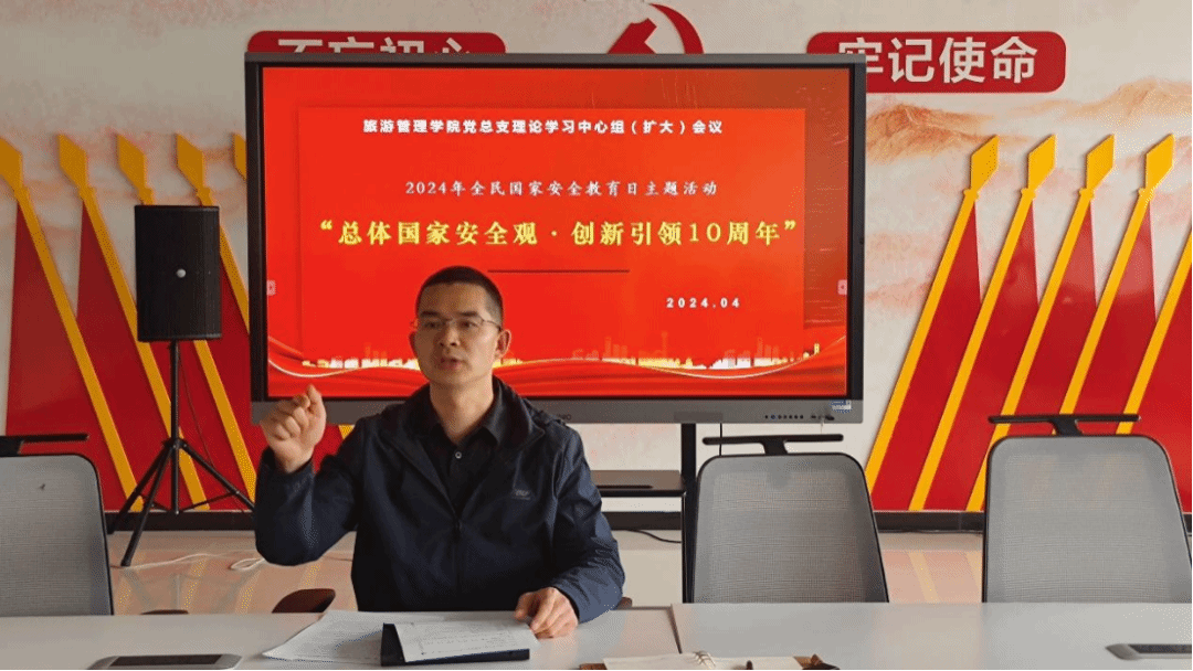 为深入学习贯彻落实党的二十大精神和习近平总书记关于总体国家安全观的重要论述,增强师生国家安全意识和法治意识,4月10日,旅游管理学院在毓秀楼四楼党建馆组织全体教职工开展“全民国家安全教育日”专题学习活动,会议由党总支书记陈海彬主持。
