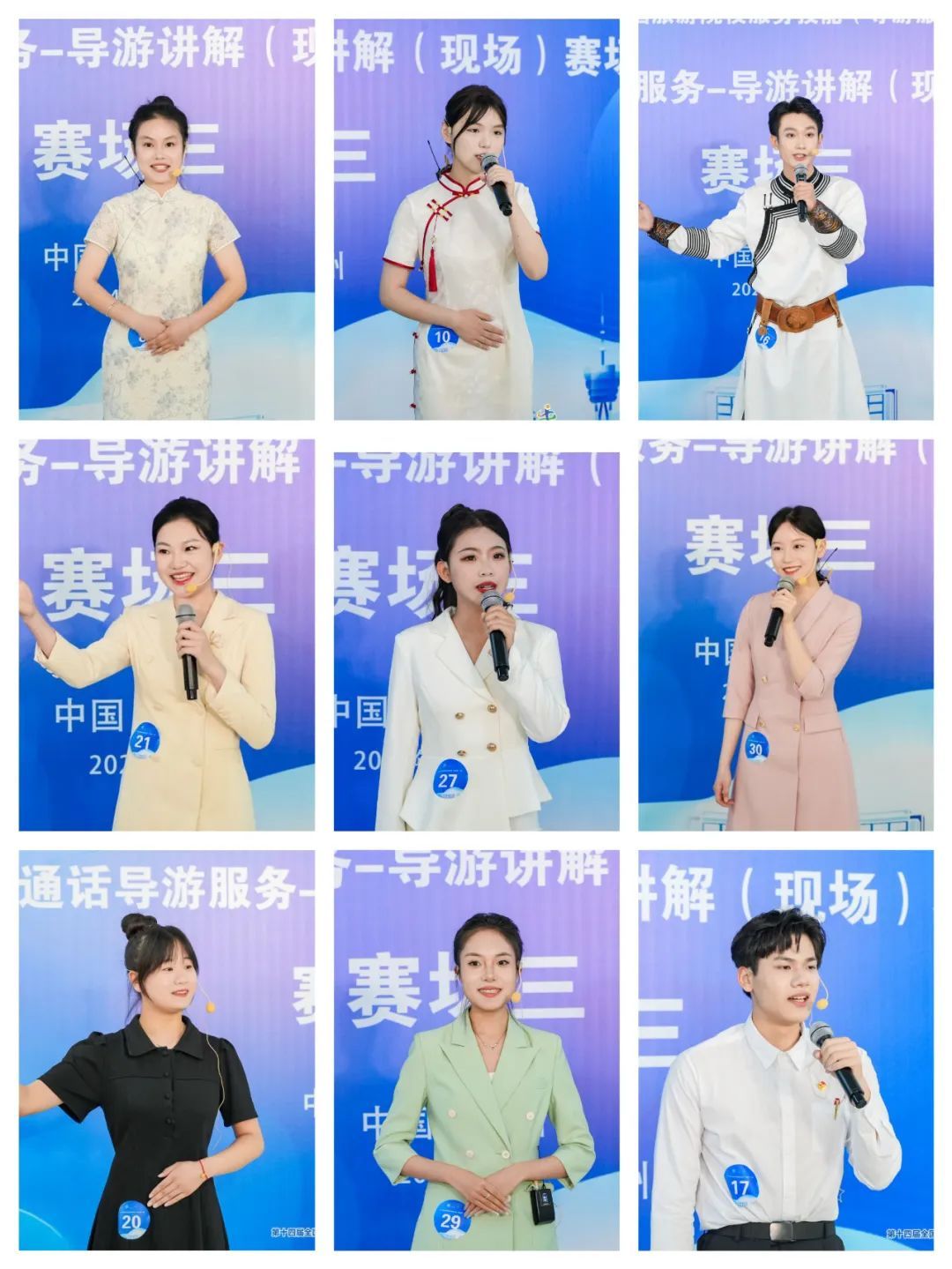在比赛现场,选手们历经普通话导游服务和英语导游服务两大环节的激烈角逐。每个项目均包含理论考核、导游讲解(现场)以及才艺展示三个部分,形成了一场精彩纷呈的较量。在比拼中,选手们展现深厚知识、流畅表达、充沛情感和多样才艺。表现赢得评委好评,彰显专业素养、精神风貌和创新活力。