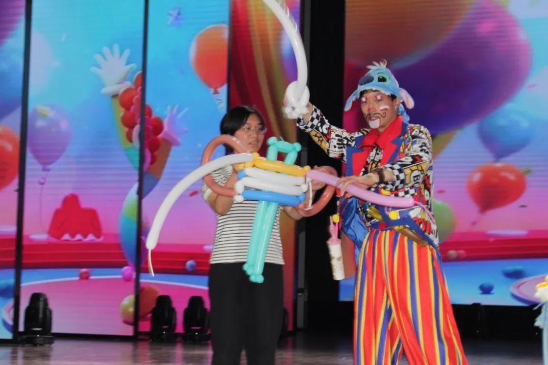 小丑的表演让大家捧腹大笑,他用气球编出各种造型,为现场增添了欢乐氛围。演员小丑为学院默默付出了两年,他的努力赢得了大家的尊敬和感激。
