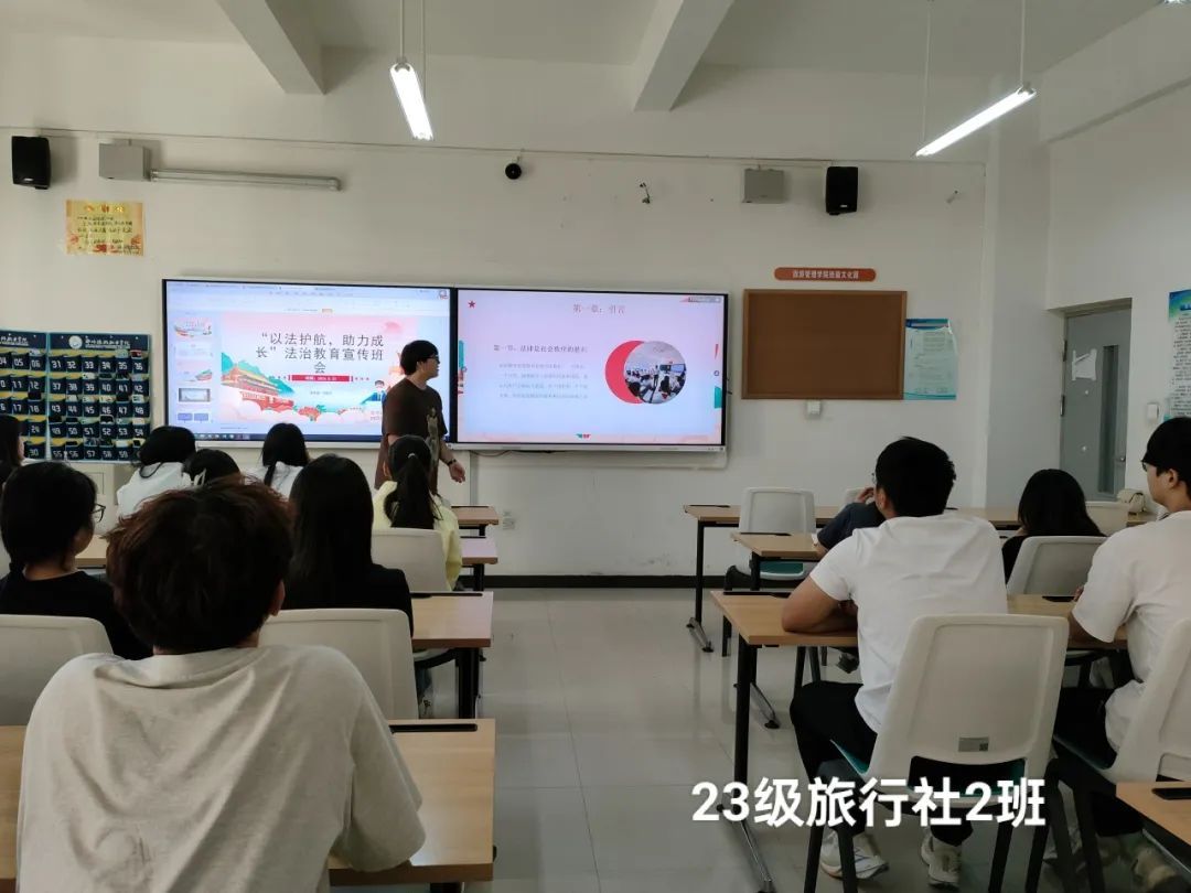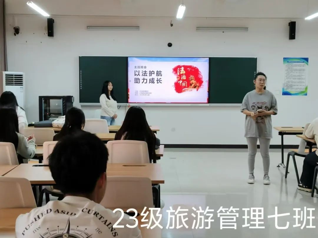 为深入开展法治宣传教育,提高学生的法律意识和自我防范意识,推进依法治校,创建平安校园,9月25日,郑州旅院旅游管理学院组织召开“以法护航,助力成长”法治教育宣传班会,班会由各班班主任主持。
