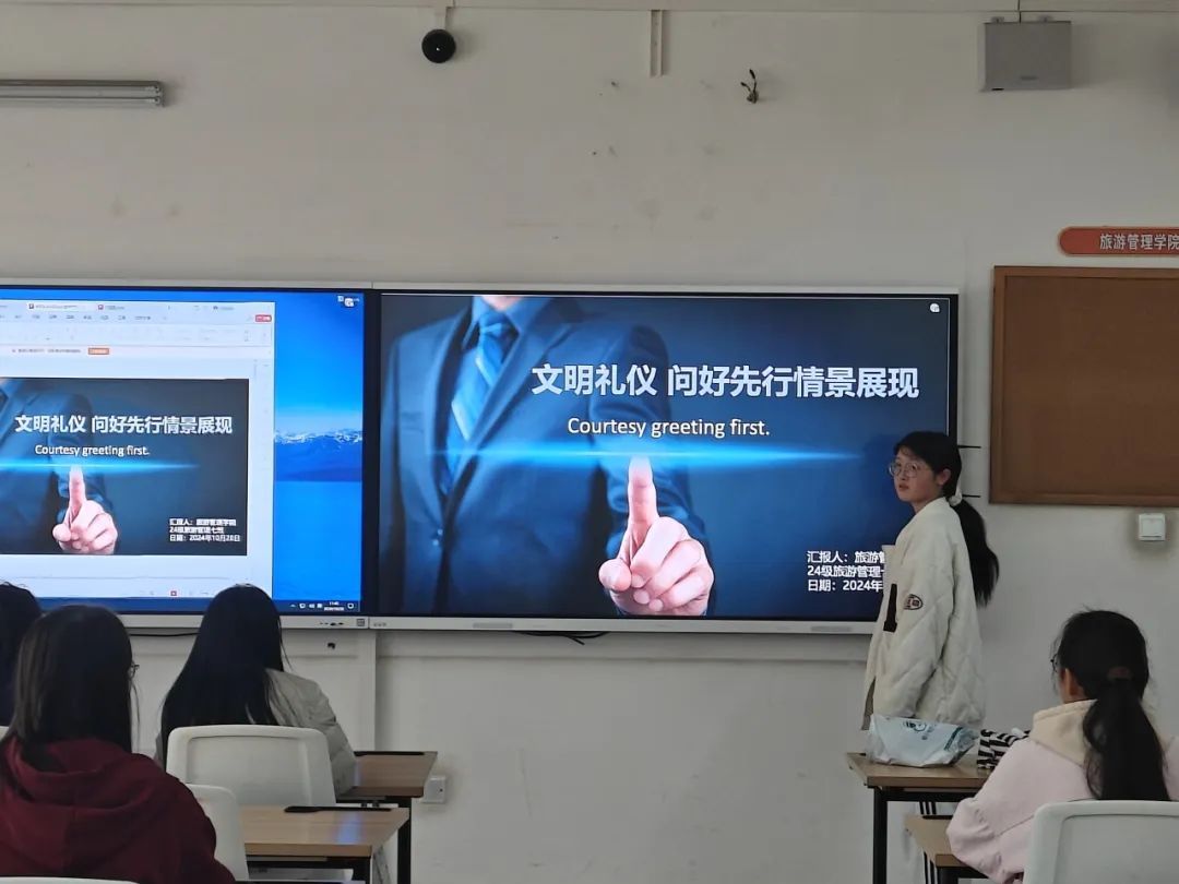 班会上,班主任再次强调了日常文明用语的重要性,指出“您好、请、谢谢、对不起、再见”这十字文明用语中蕴含着的意义。随后通过看视频、阅读材料、讨论等系列活动,使同学们深刻认识到文明用语的价值,引导同学们正确文明用语。