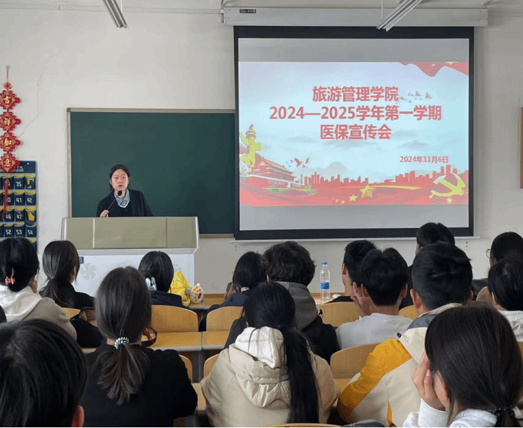 2024年11月6日上午,旅游管理学院在5A402召开2024—2025学年第一学期医疗保险宣传会。专职辅导员丁铨铨出席会议,学生会办公室干事以及全体班长参加会议。会议由丁铨铨主持。