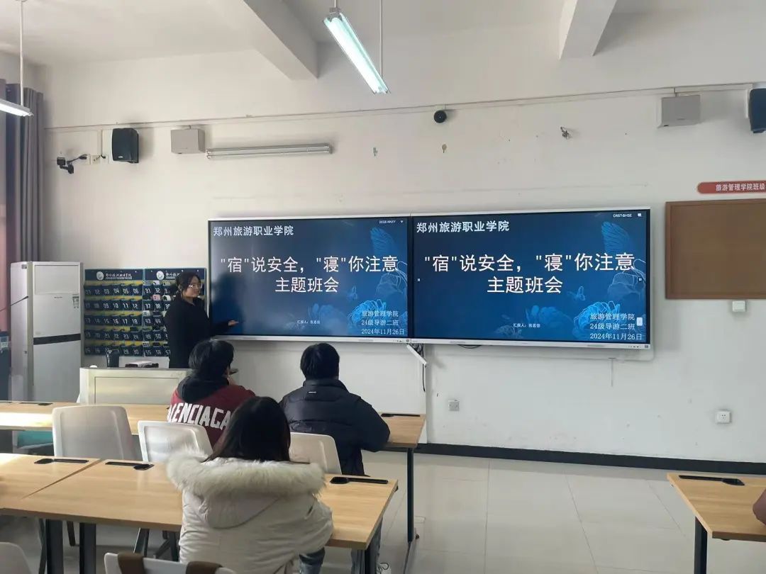 为增强同学们的宿舍安全意识,提高安全防范能力,11月25日,郑州旅院旅游管理学院组织召开“‘宿’说安全”主题教育班会,班会由各班班主任主持。