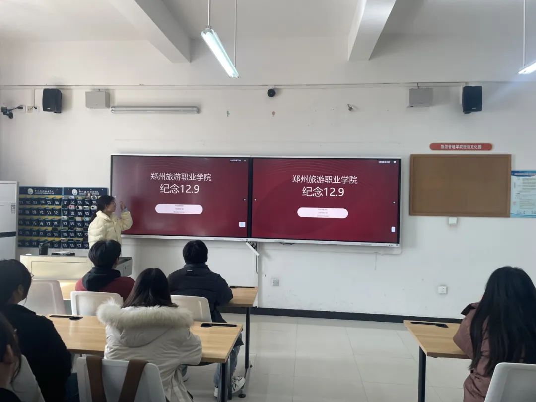 为深化党史学习教育,传承爱国主义精神,激励学生赓续红色血脉、增强民族自信、担当青春使命,11月26日,郑州旅院旅游管理学院组织召开纪念“一二·九”主题班会,班会由各班班主任主持。