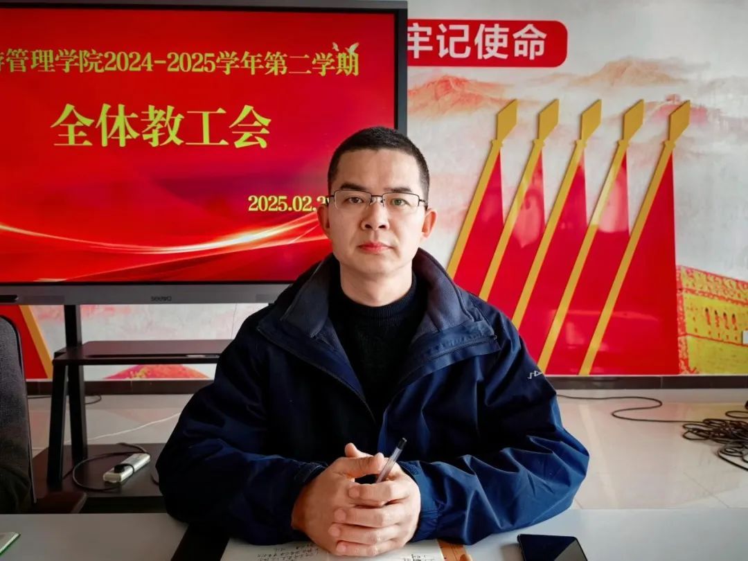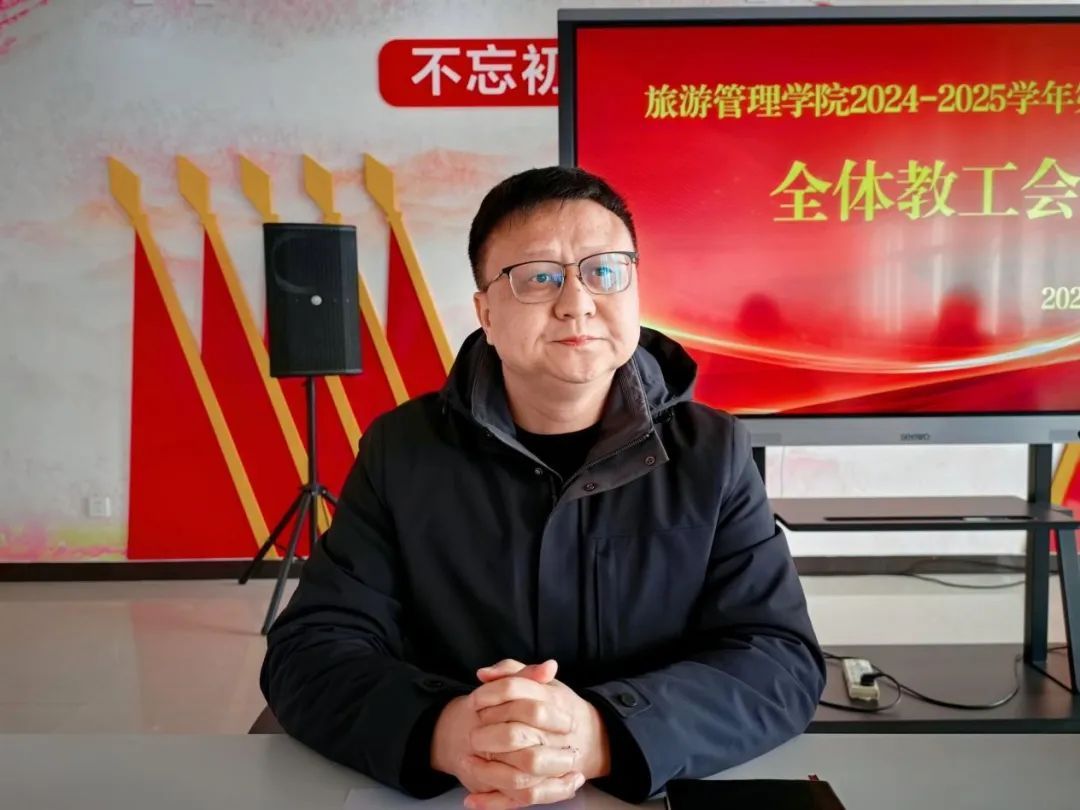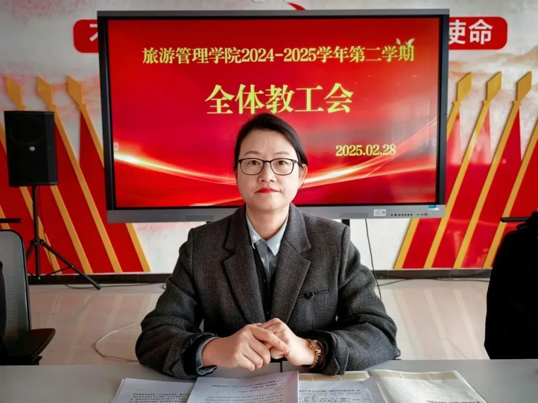 2月28日上午,旅游管理学院在5号楼四楼党建馆召开新学期全体教职工会议。学院院长李俊、党总支书记陈海彬、党总支副书记张楗让出席会议,全体教职工参会。会议由张楗让主持。